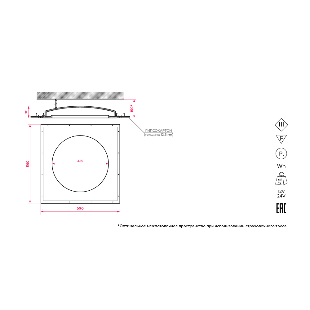 Габариты (Д/Ш/В) - 590/590/90 мм