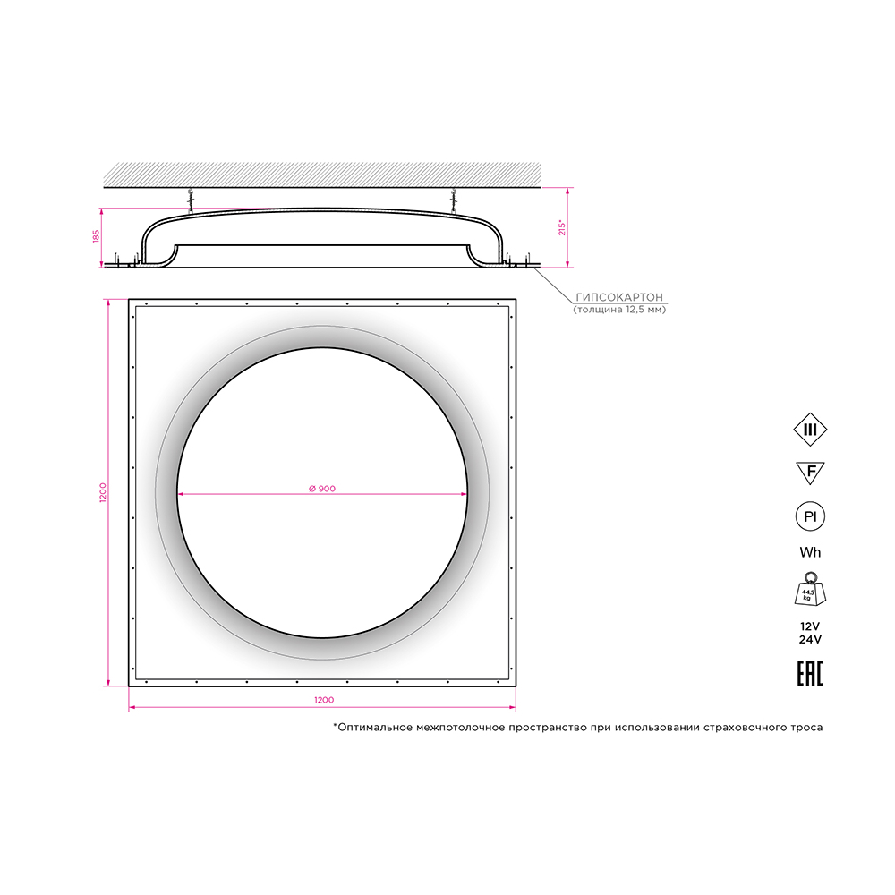 Габариты (Д/Ш/В) - 1200/1200/185 мм