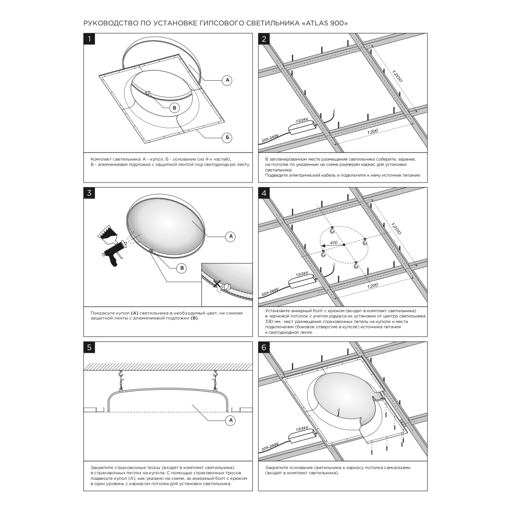 Купольный встраиваемый гипсовый светильник отраженного света для установки в потолках из гипсокартона.