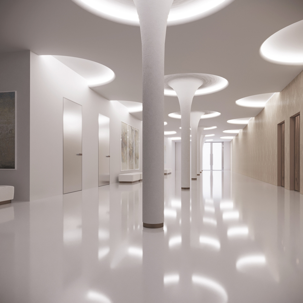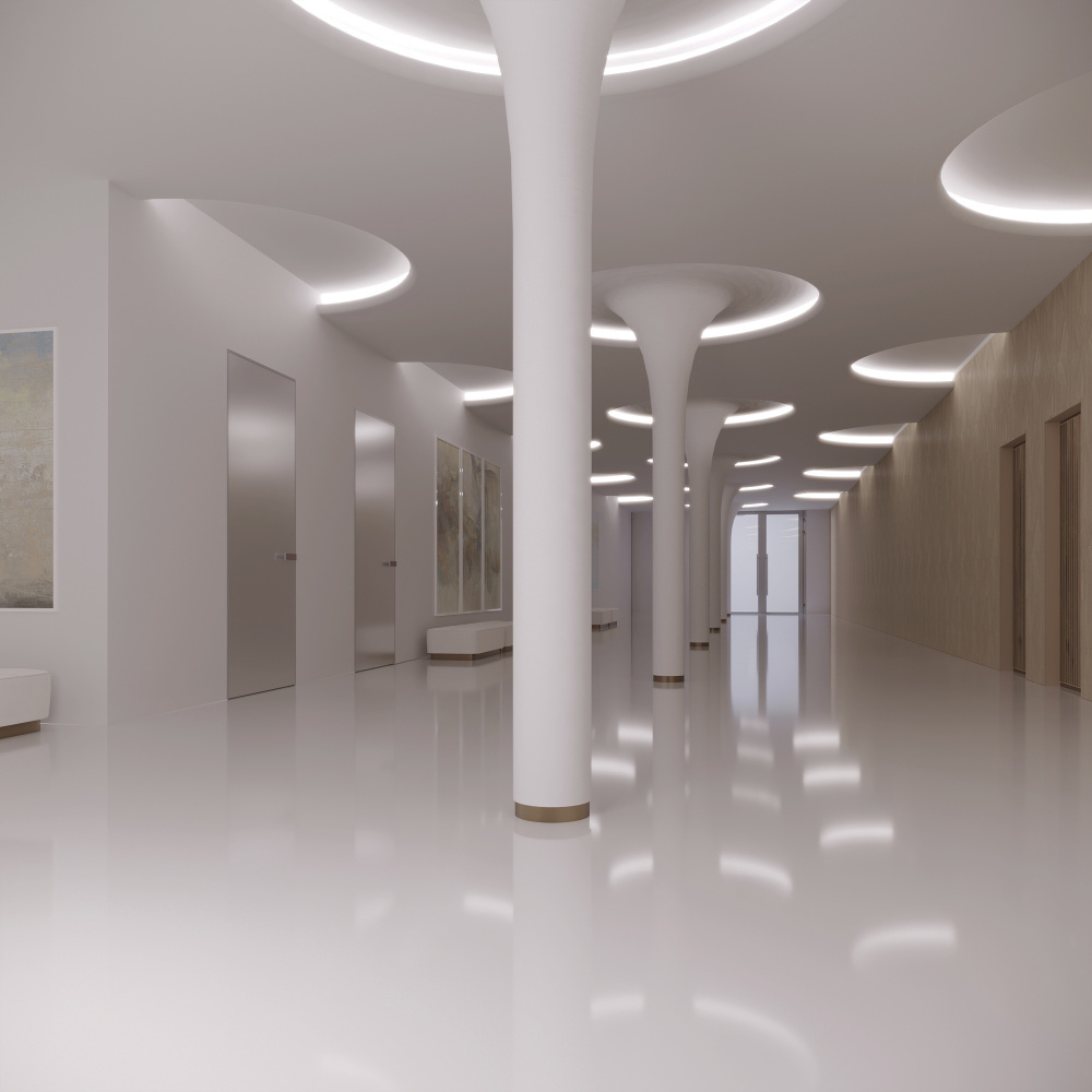 Полностью интегрируется в архитектуру потолка и стен.