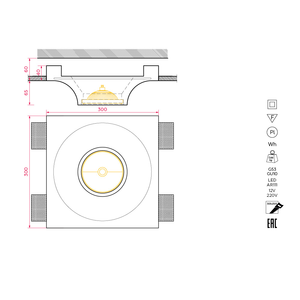 Встраиваемый гипсовый светильник направленного света для установки в потолках из гипсокартона.