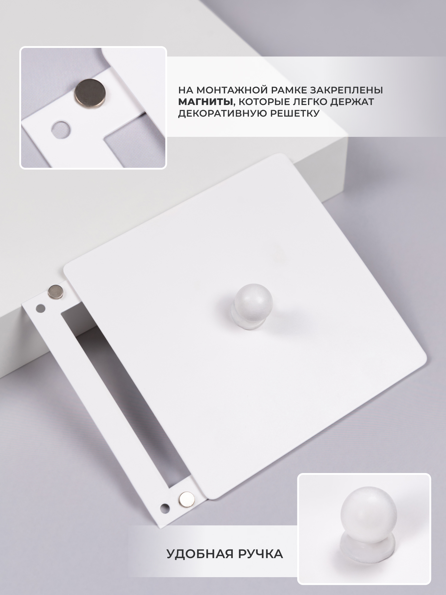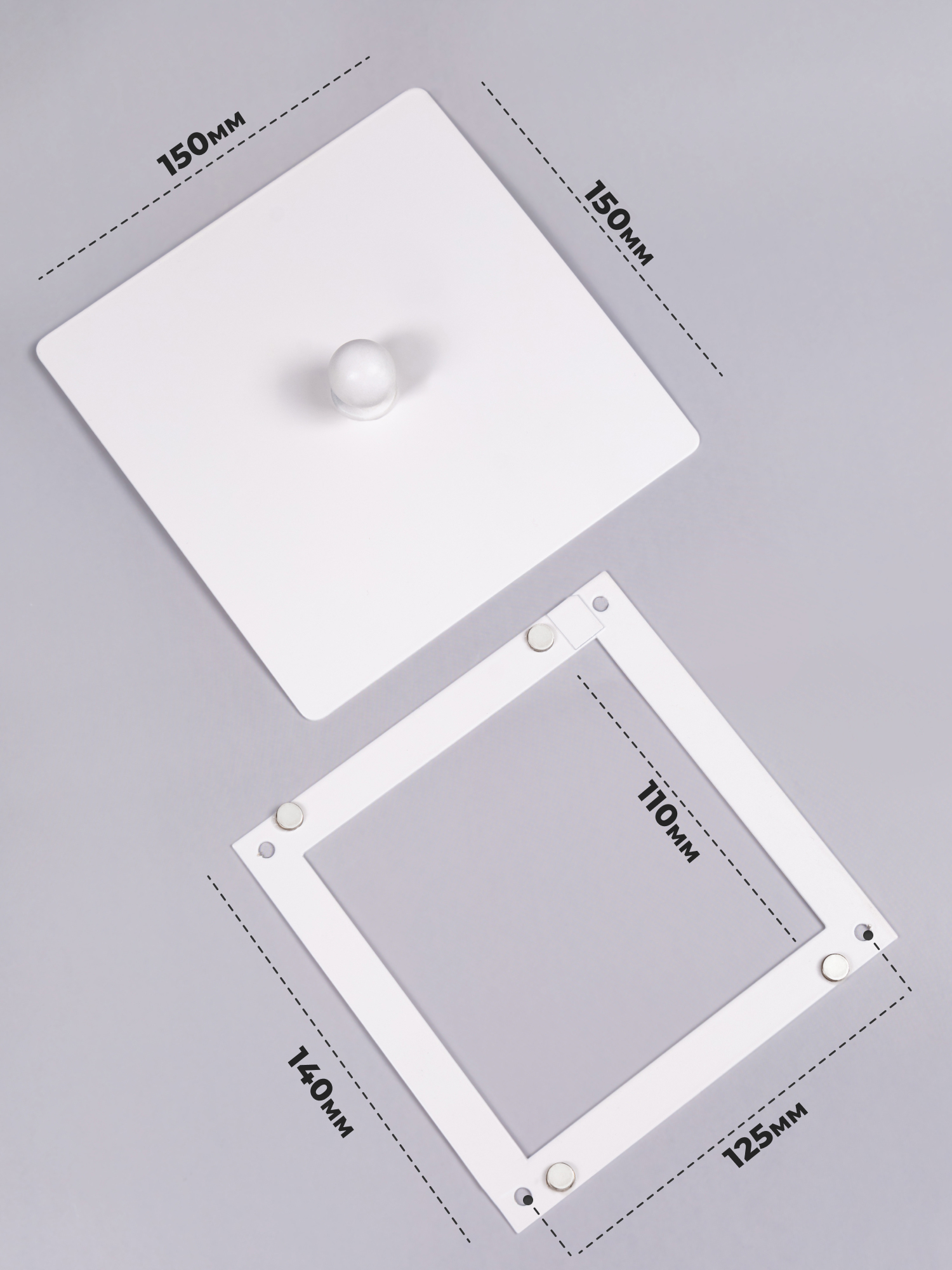Декоративный люк состоит из 2-х частей. Рамка крепится к стене с помощью саморезов, а декоративная панель фиксируется к рамке с помощью магнитов. Передняя панель плоская и по центру панели имеется удобная ручка для быстрого снятия. Люки используются для доступа к скрытым коммуникациям, счетчикам, датчикам, нишам и тд. Выполнен из стали и окрашен в печи. Подходит для установки на стену.