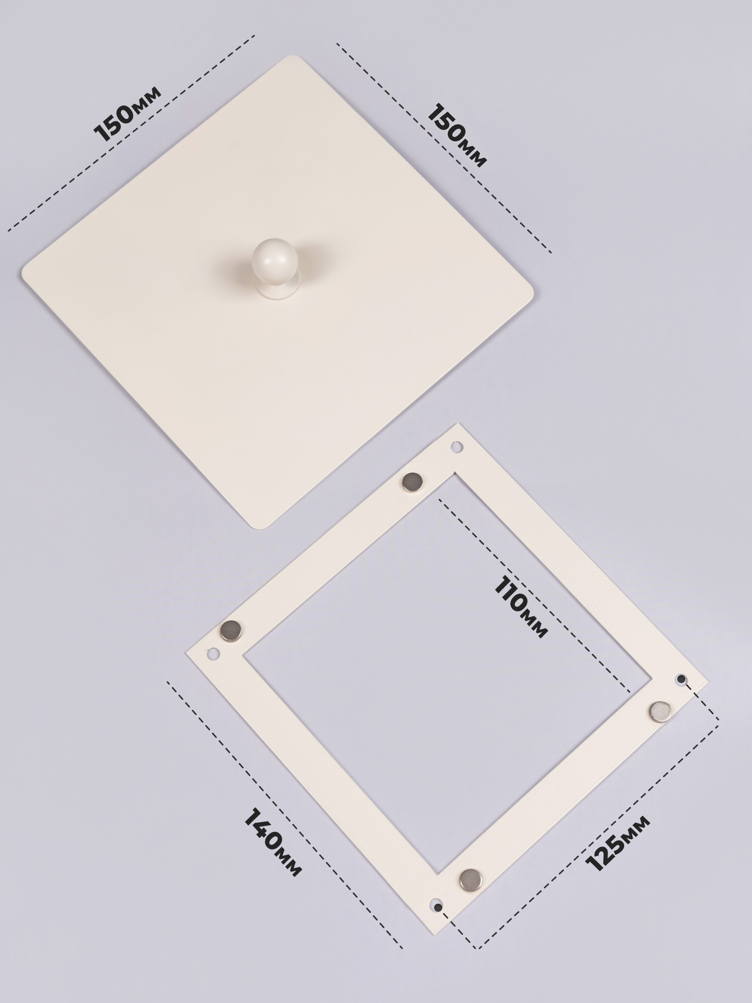 Декоративный люк состоит из 2-х частей. Рамка крепится к стене с помощью саморезов, а декоративная панель фиксируется к рамке с помощью магнитов. Передняя панель плоская  и по центру панели имеется удобная ручка для быстрого снятия. Люки используются для доступа к скрытым коммуникациям, счетчикам, датчикам, нишам и тд. Выполнен из стали и окрашен в печи. Подходит для установки на стену.