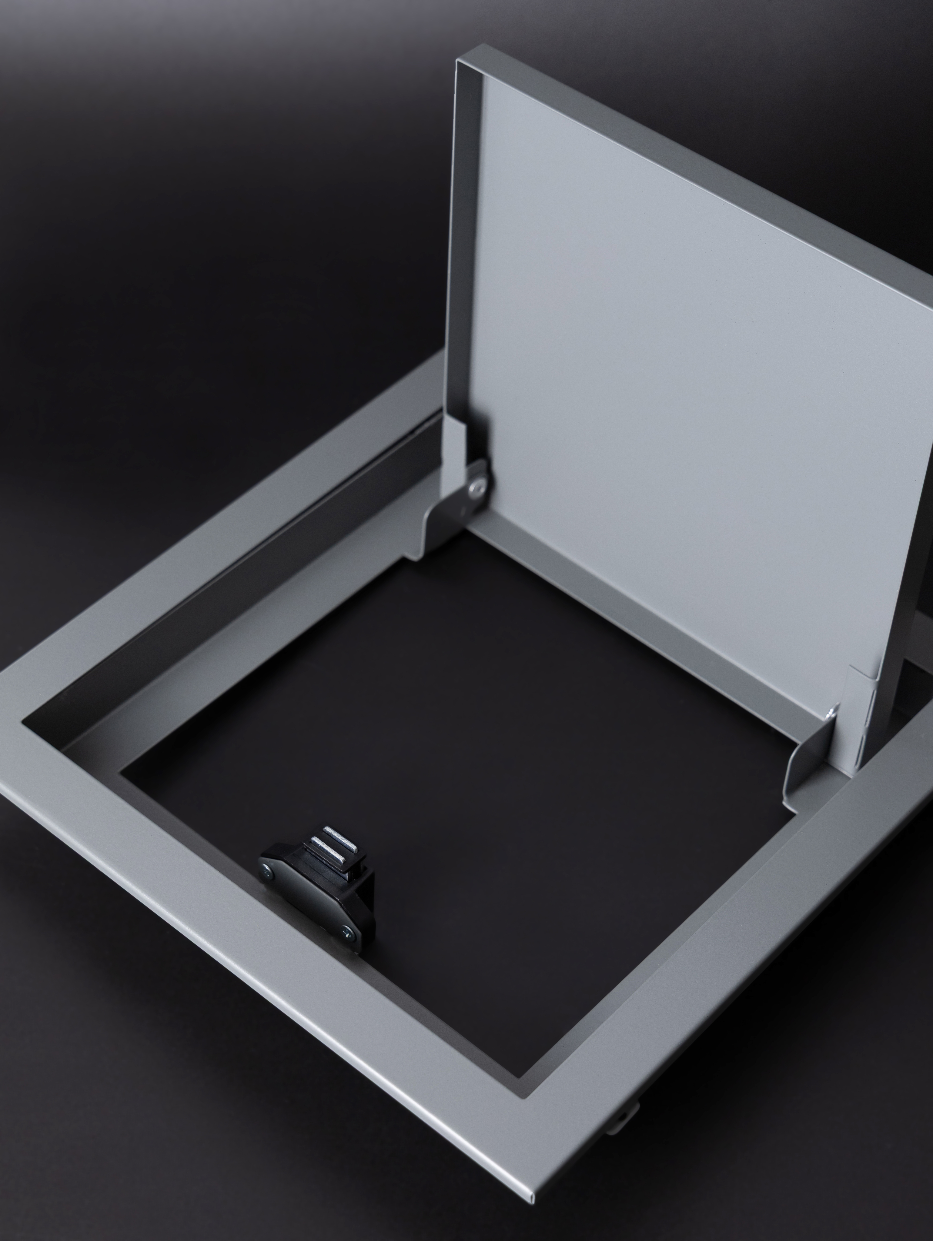 Люк с дверцей на магнитном креплении представляет собой инновационное решение для обеспечения быстрого и удобного доступа к скрытым системам, таким как электрические счетчики и коммуникационные линии. Данный конструктивный элемент может быть интегрирован как в стеновые, так и в потолочные конструкции, что значительно расширяет его функциональные возможности и делает универсальным для применения в различных типах помещений.