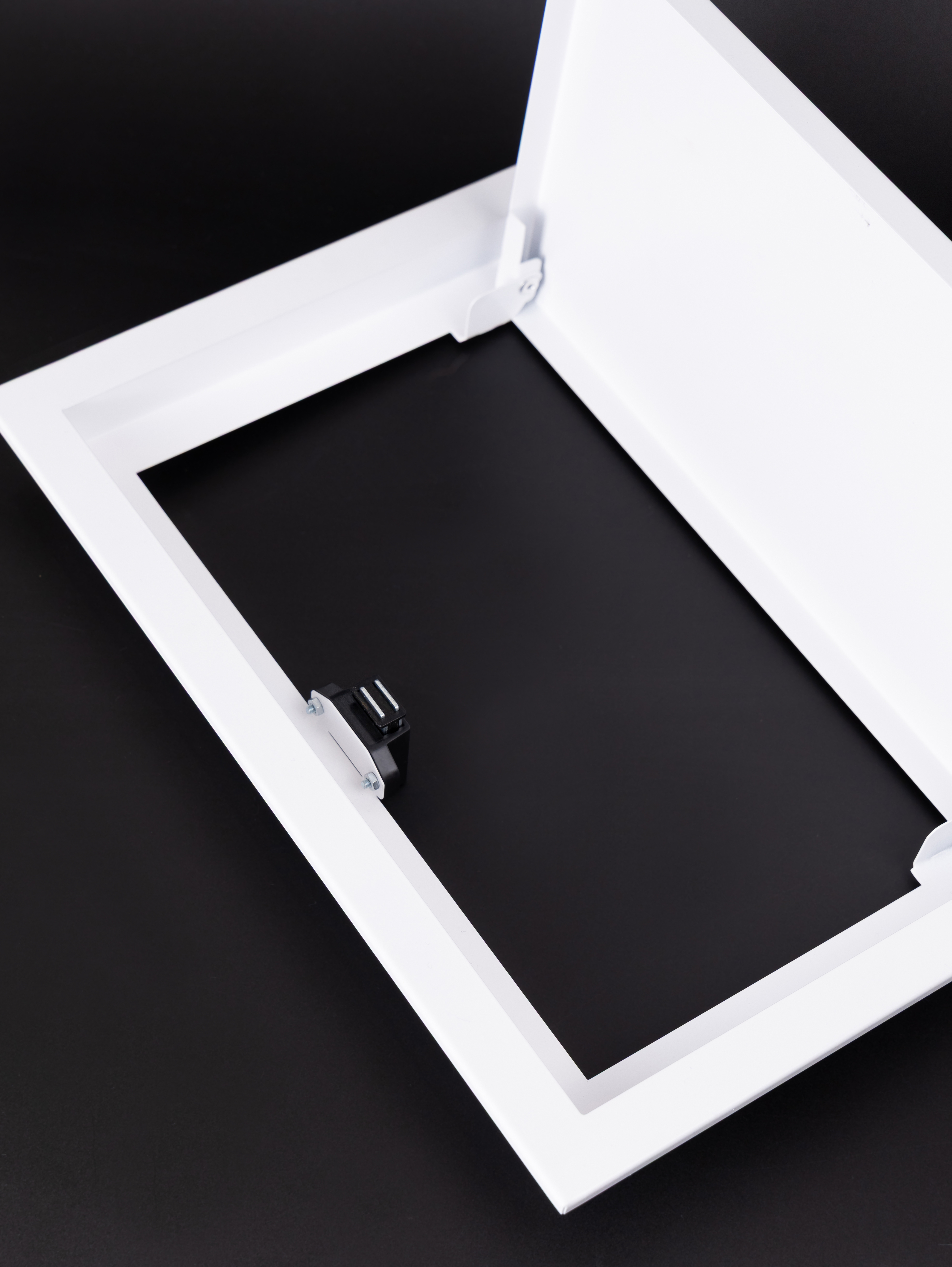 Люк с дверцей на магнитном креплении представляет собой инновационное решение для обеспечения быстрого и удобного доступа к скрытым системам, таким как электрические счетчики и коммуникационные линии. Данный конструктивный элемент может быть интегрирован как в стеновые, так и в потолочные конструкции, что значительно расширяет его функциональные возможности и делает универсальным для применения в различных типах помещений.