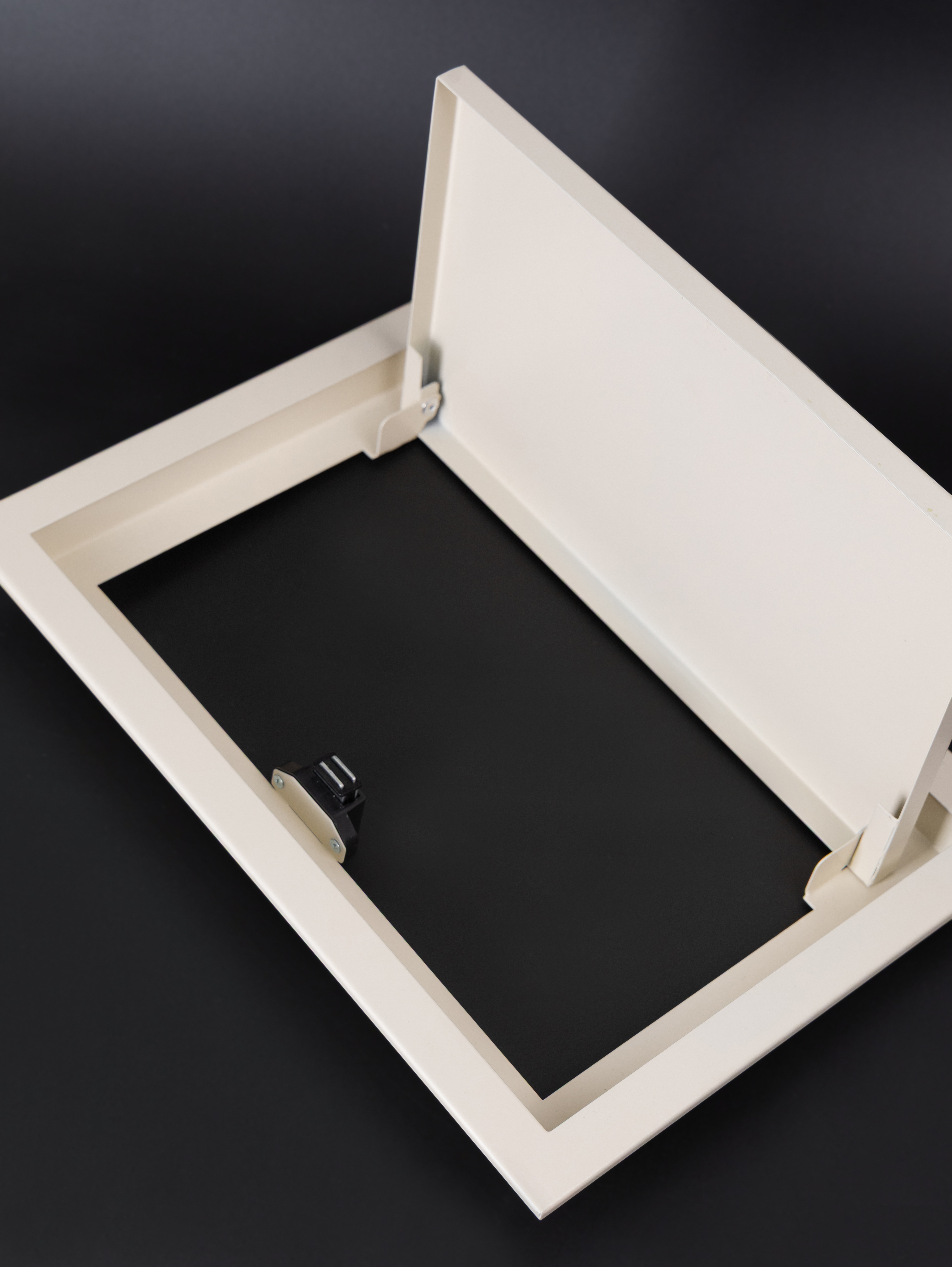 Люк с дверцей на магнитном креплении представляет собой инновационное решение для обеспечения быстрого и удобного доступа к скрытым системам, таким как электрические счетчики и коммуникационные линии. Данный конструктивный элемент может быть интегрирован как в стеновые, так и в потолочные конструкции, что значительно расширяет его функциональные возможности и делает универсальным для применения в различных типах помещений.