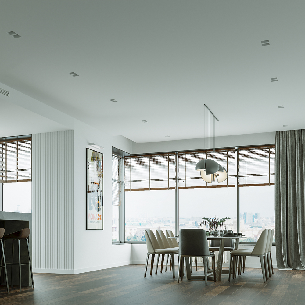 Лаконичный современный дизайн для любых стилей интерьера. Превосходное эстетическое исполнение и полная интеграция в архитектуру потолка. Готов к покраске в любой цвет. Экологичен и пожаробезопасен.
