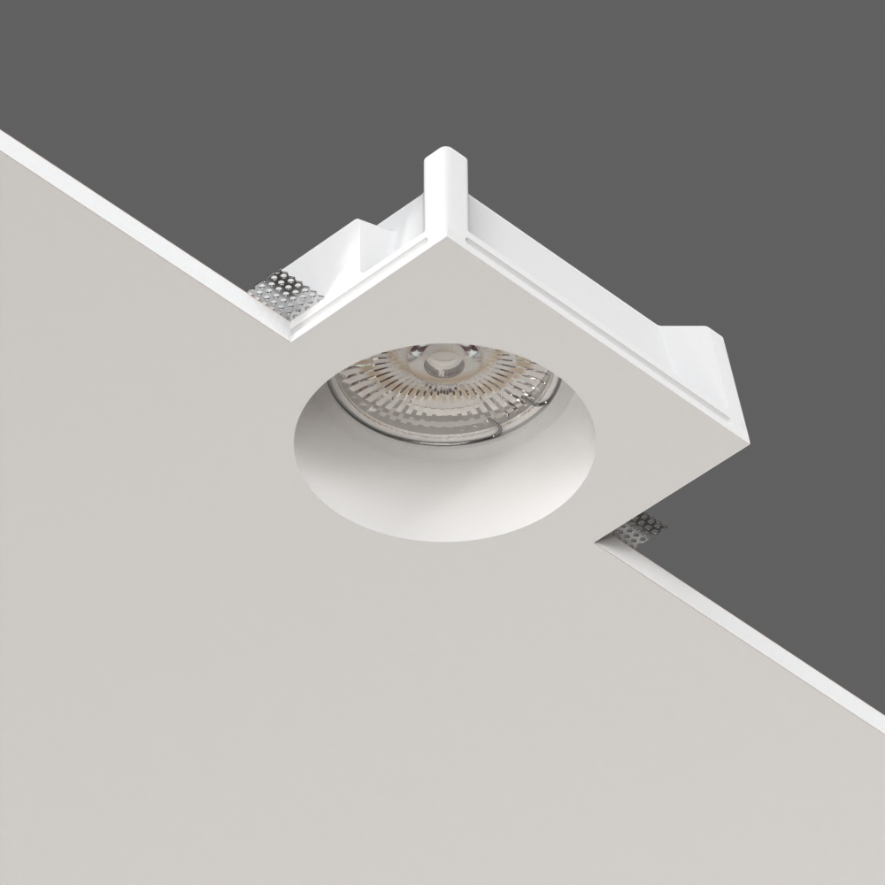 Встраиваемый гипсовый светильник направленного света для установки в потолках из гипсокартона.
