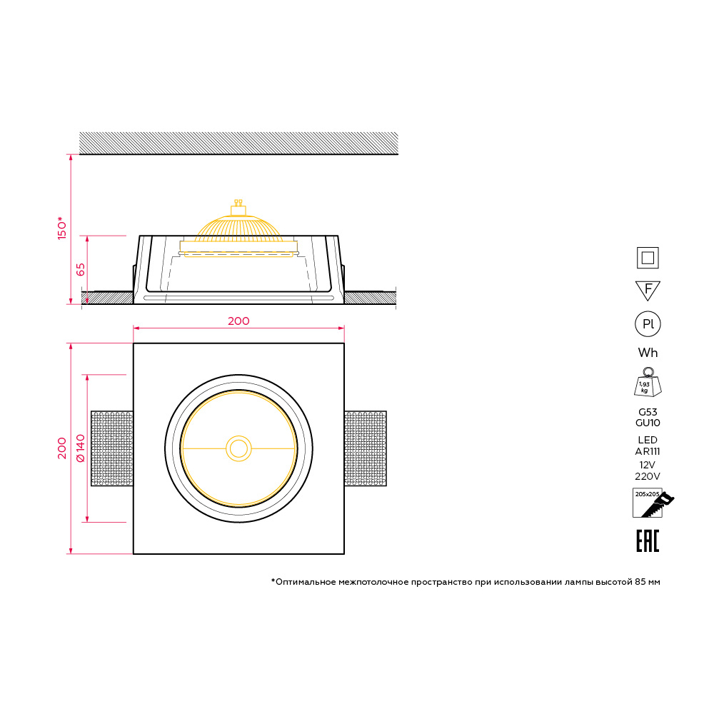 Рекомендуемый источник света - лампа LED AR111 GU10 / LED AR111 G53