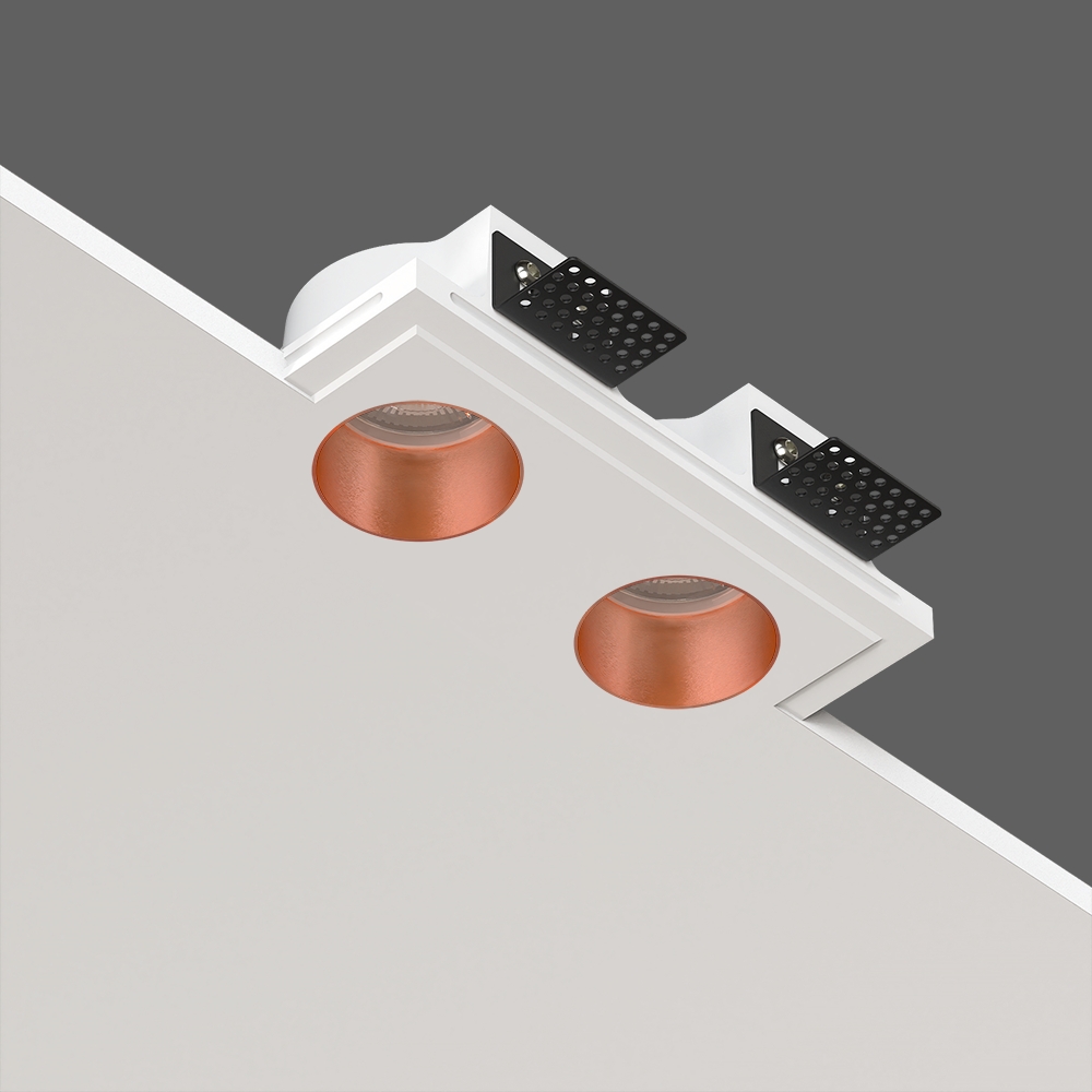 УНИКАЛЬНЫЙ ПРОДУКТ, соединивший в себе тренды минимализма и индустриальной эстетики –  встраиваемый гипсовый светильник СО ВСТАВКОЙ ИЗ 100% МЕДИ.