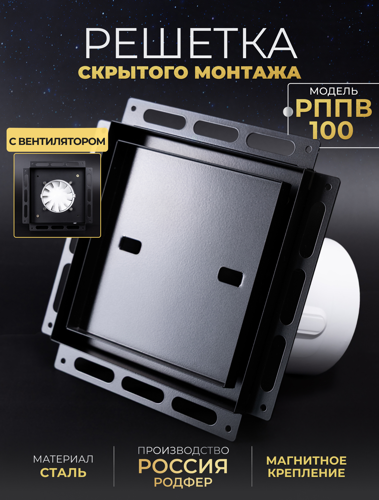Вентиляционная решетка под плитку РППВ 100 210х210 от российского производителя Родфер с вентилятором Silent 100 представляет собой идеальное решение для эффективной вентиляции. Благодаря сочетанию элегантности и функциональности, она подходит для любого интерьера. Черный цвет решетки легко вписывается в любое помещение, а скрытый монтаж под плитку сохраняет эстетику пространства.