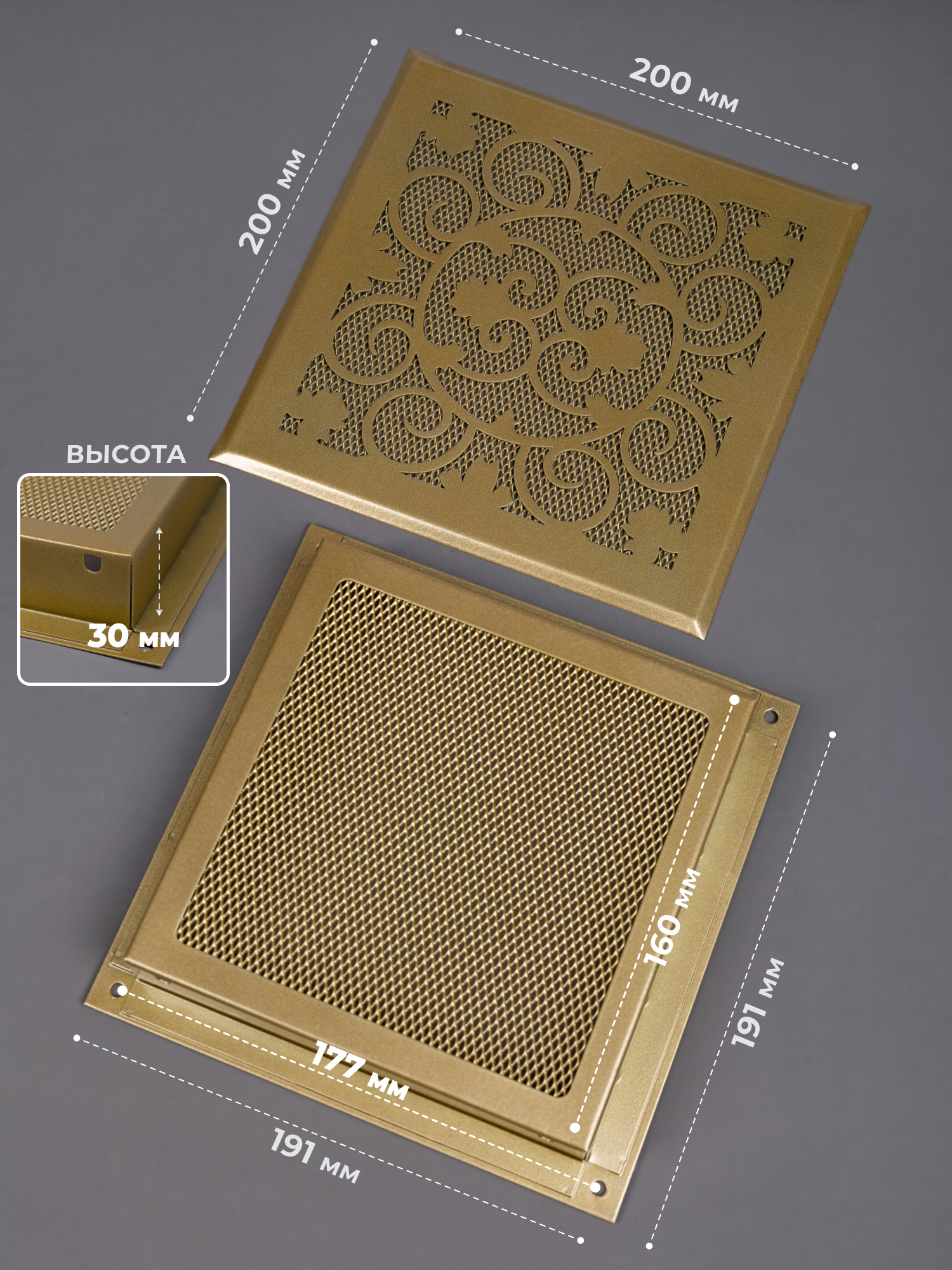 Размер внутренней части решетки 191х191мм