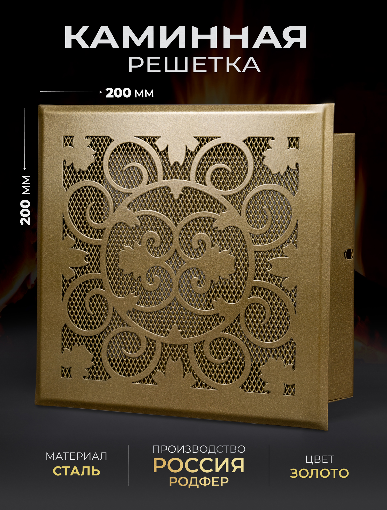 Решетка вентиляционная для камина 200х200 Золото