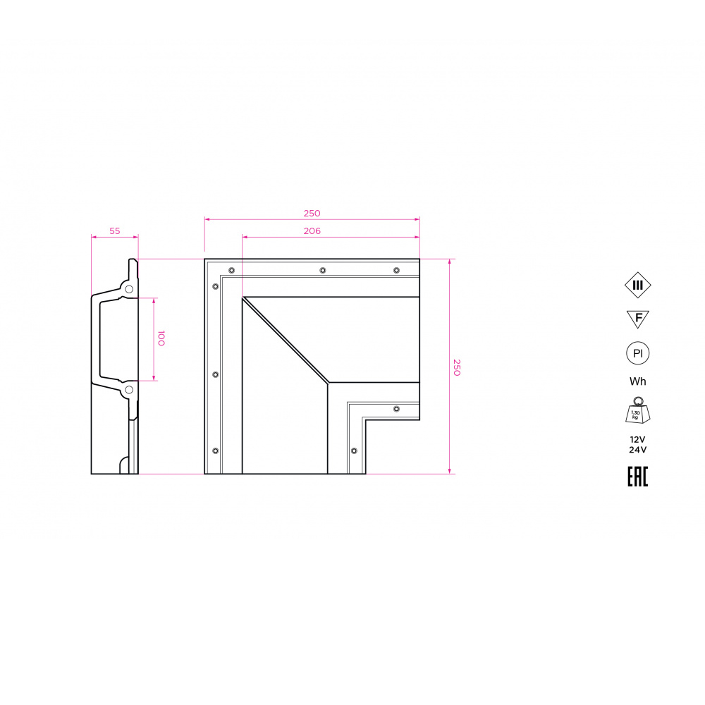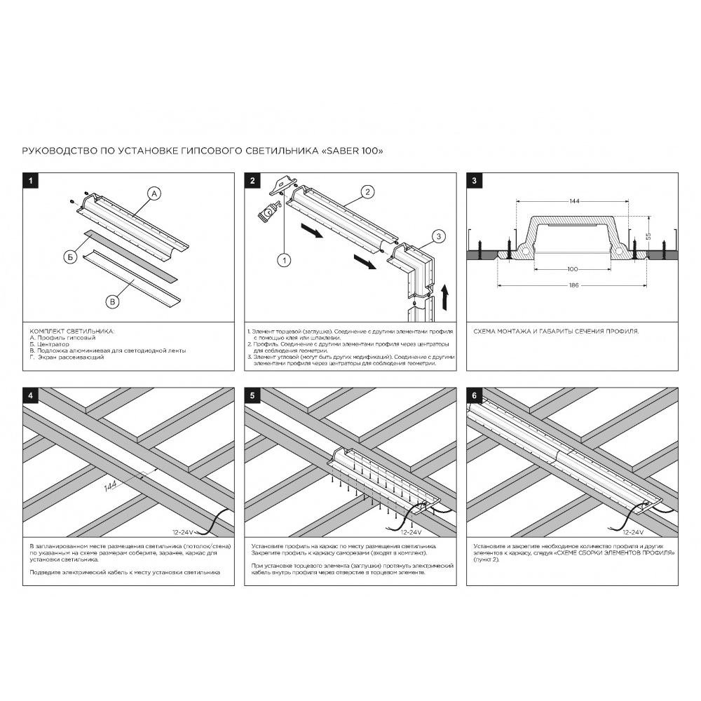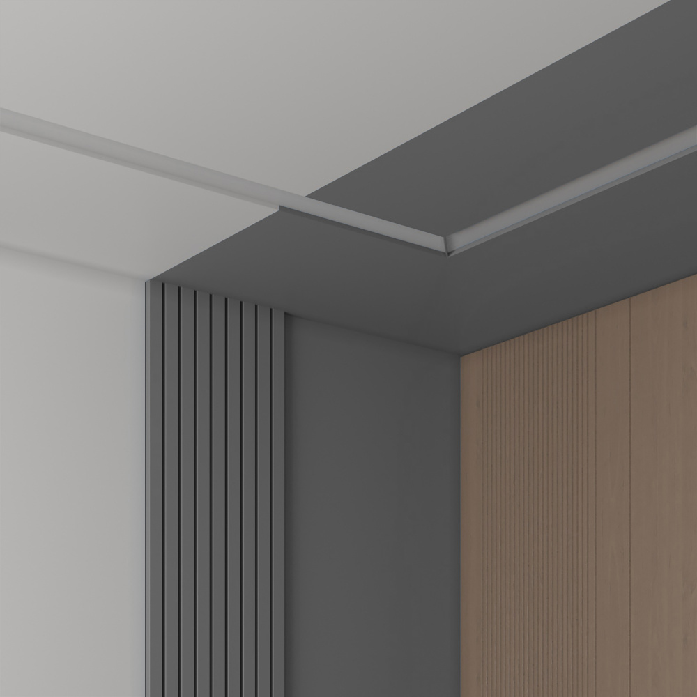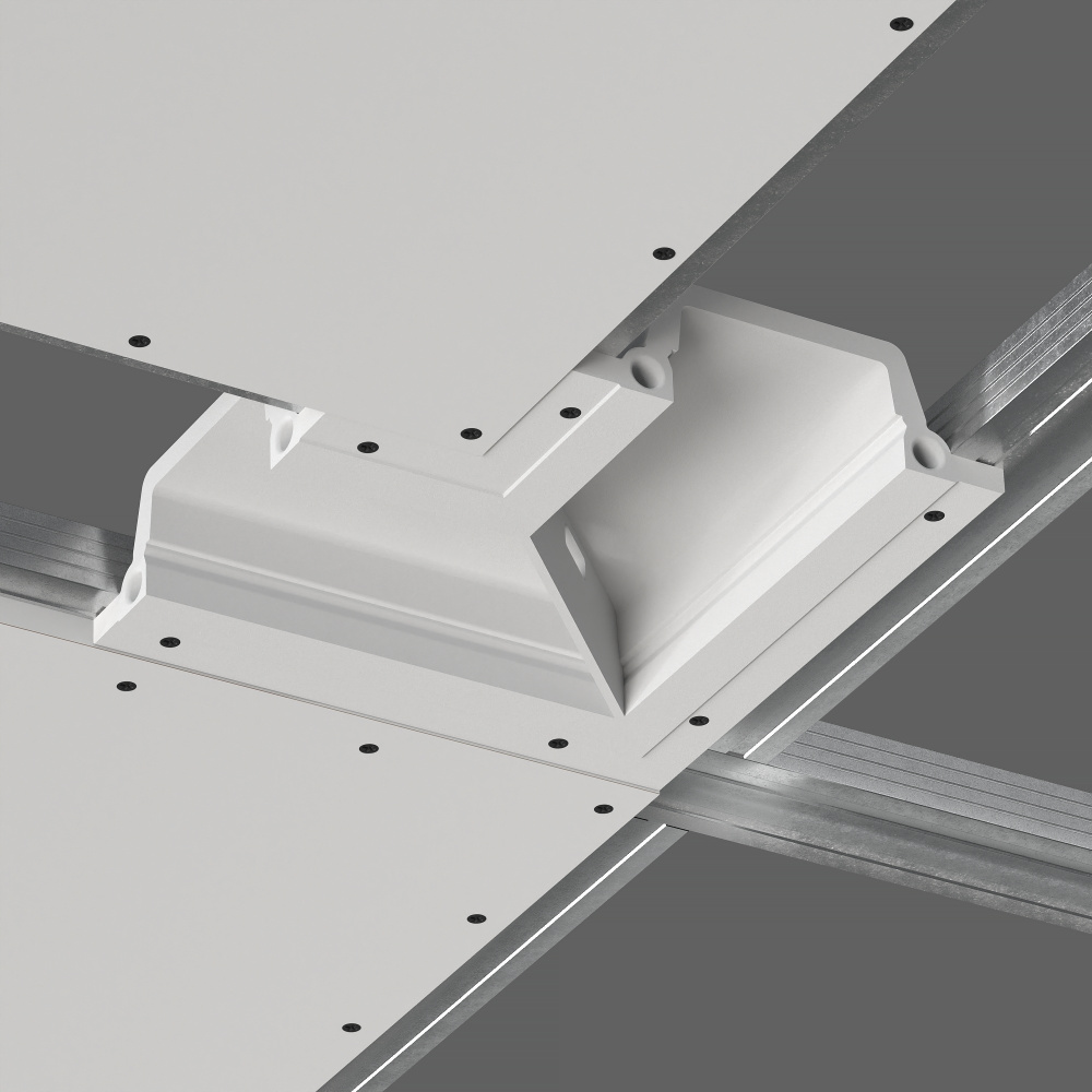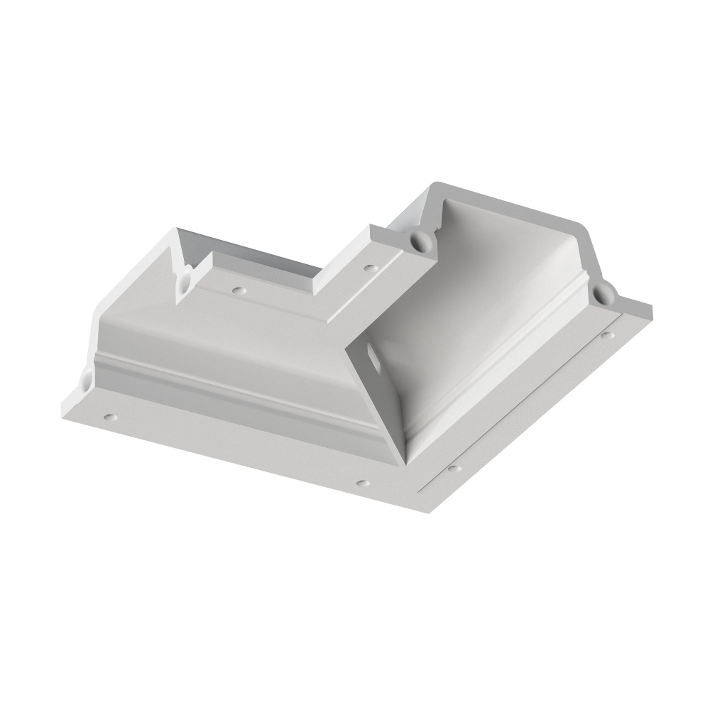 Соединительный элемент (угол 90) встраиваемой профильной гипсовой системы освещения прямого выхода света SABER 100 для установки в потолках и стенах из гипсокартона.