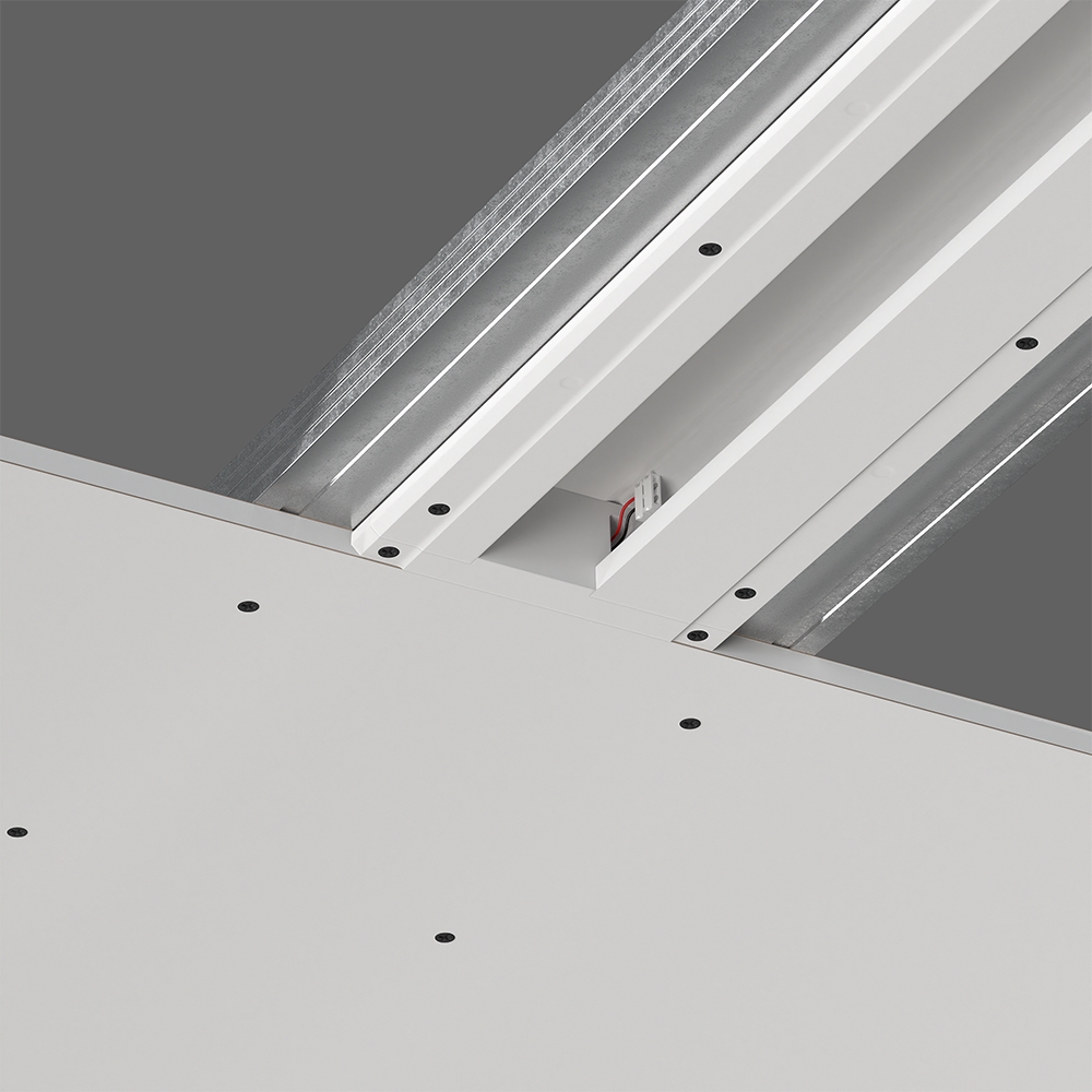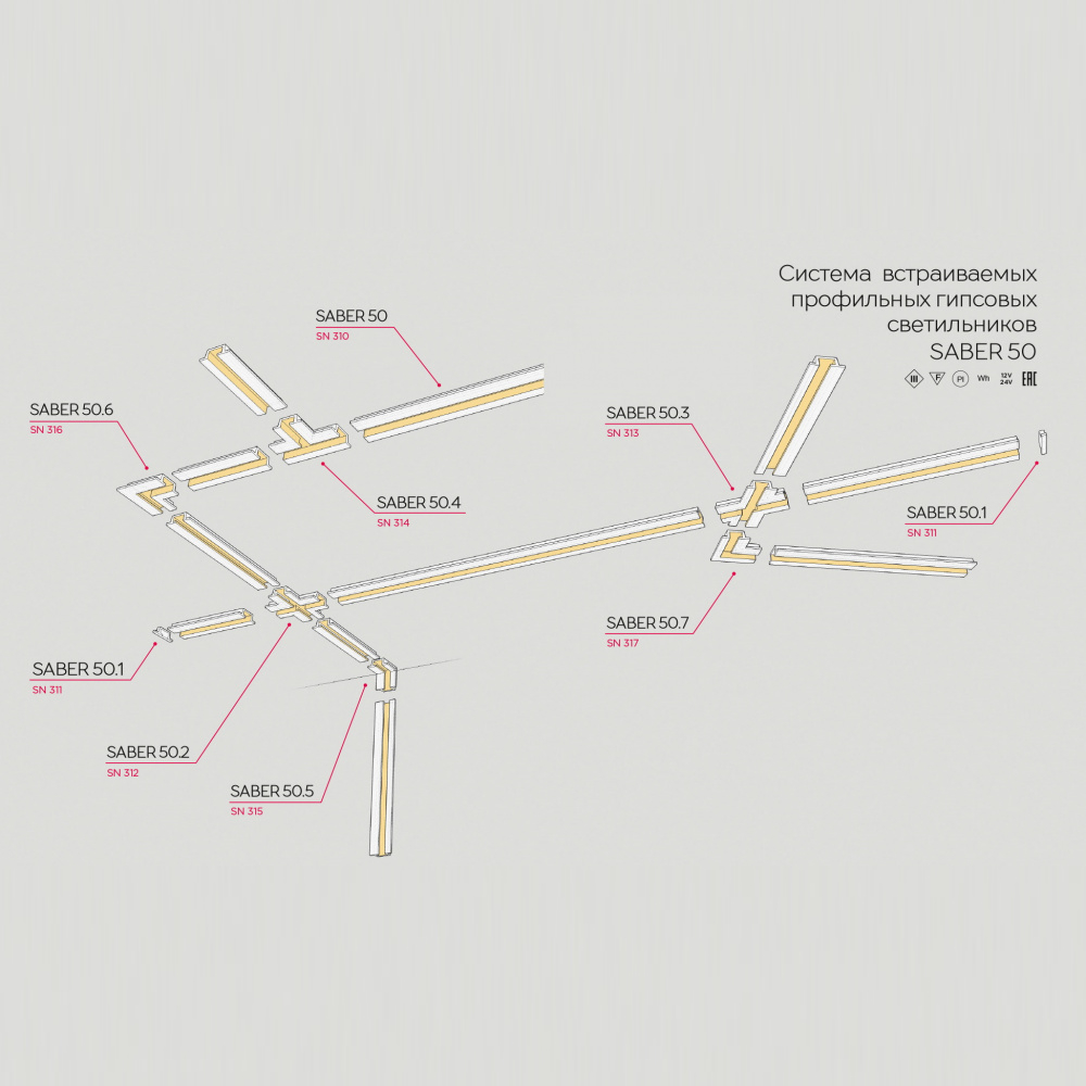 Соединительный элемент (угол 90 стена/стена, стена/потолок) встраиваемой профильной гипсовой системы освещения отражённого света SABER 50 для установки в потолках и стенах из гипсокартона.