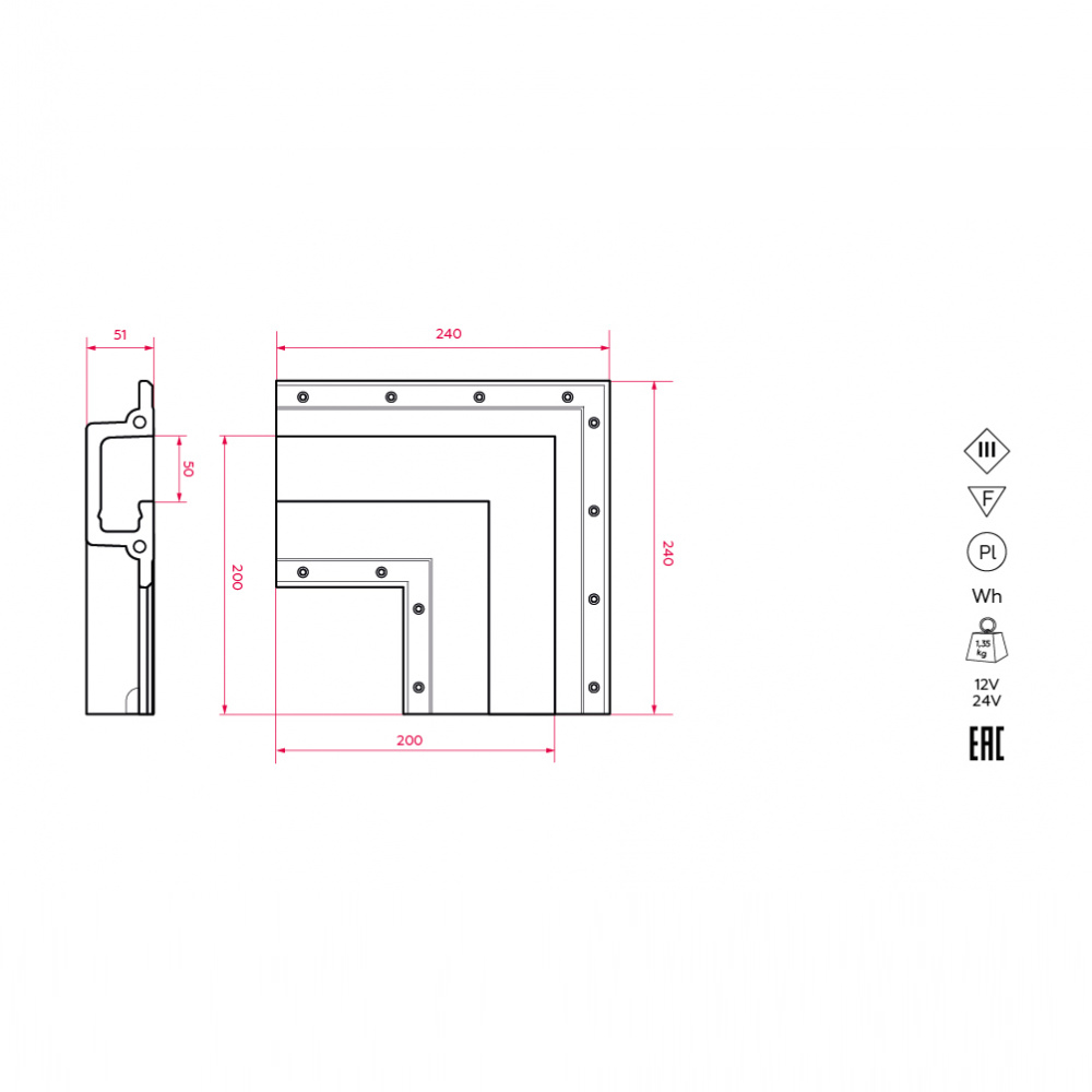 Соединительный элемент (внутренний угол 90) встраиваемой профильной гипсовой системы освещения отражённого света SABER 50 для установки в потолках и стенах из гипсокартона.