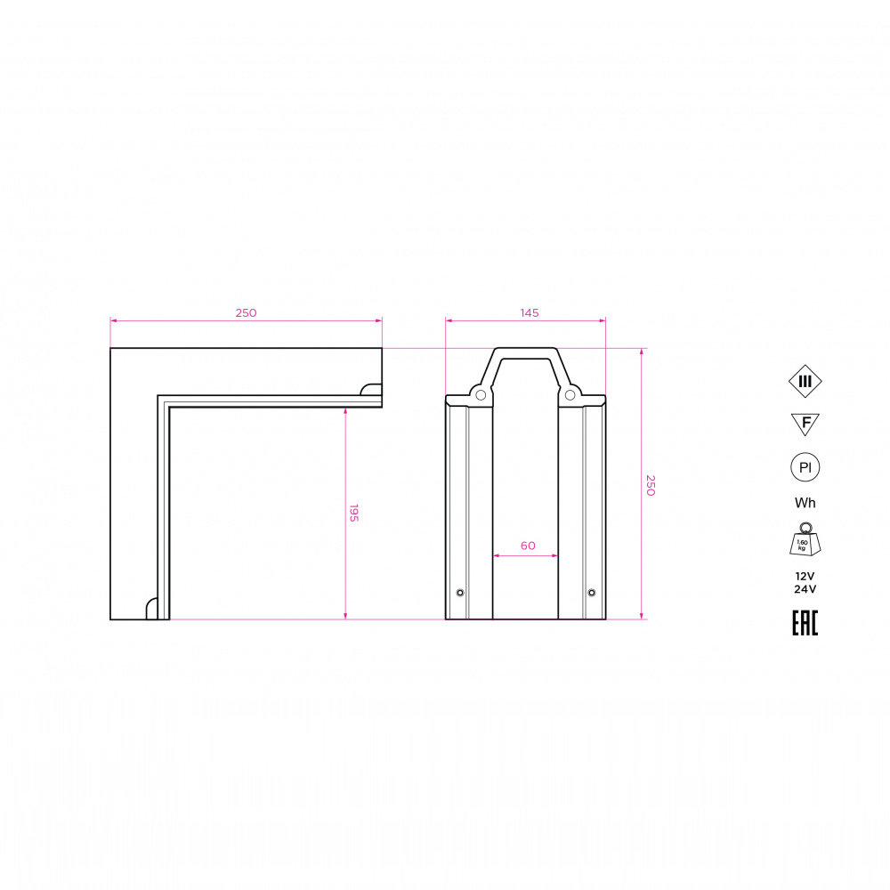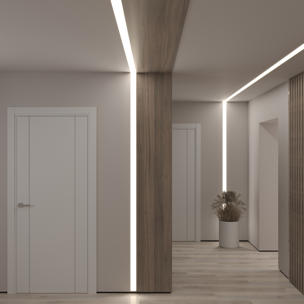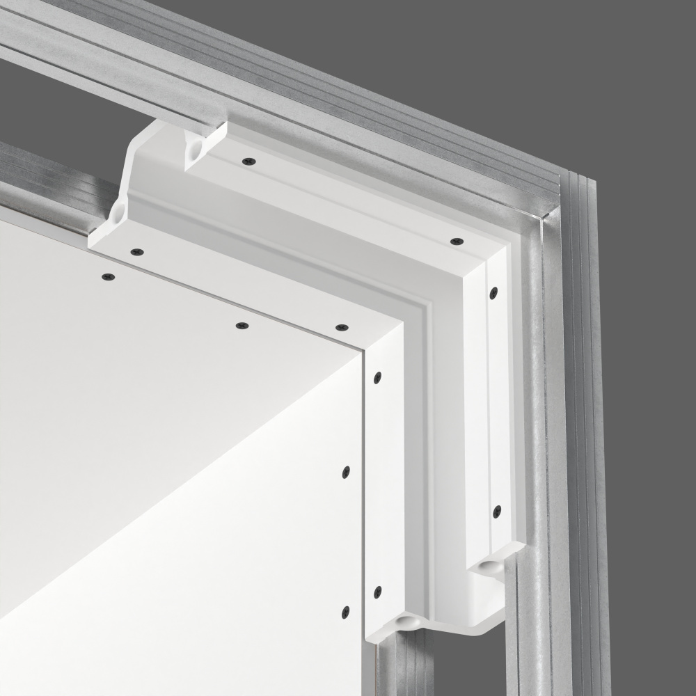 Соединительный элемент (угол 90 стена/стена, стена/потолок) встраиваемой профильной гипсовой системы освещения прямого выхода света SABER 60 для установки в потолках и стенах из гипсокартона.