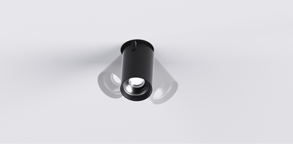 Светильники Spy in предназначены для формирования ровного и комфортного базового света. Поворотная конструкция корпуса позволяет точно направлять световой поток, адаптируя освещение под геометрию помещения и добиваясь равномерного распределения света.