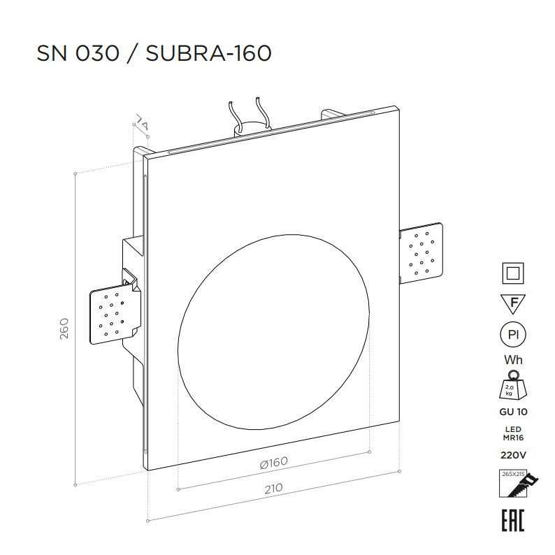 Простая универсальная конструкция под стандартный/доступный/легко заменимый источник света. Рекомендуемый источник света - лампа LED MR16 GU10 /модуль LED MR16.