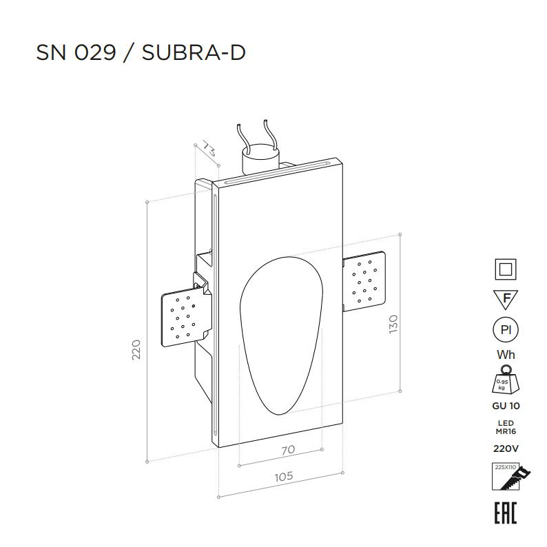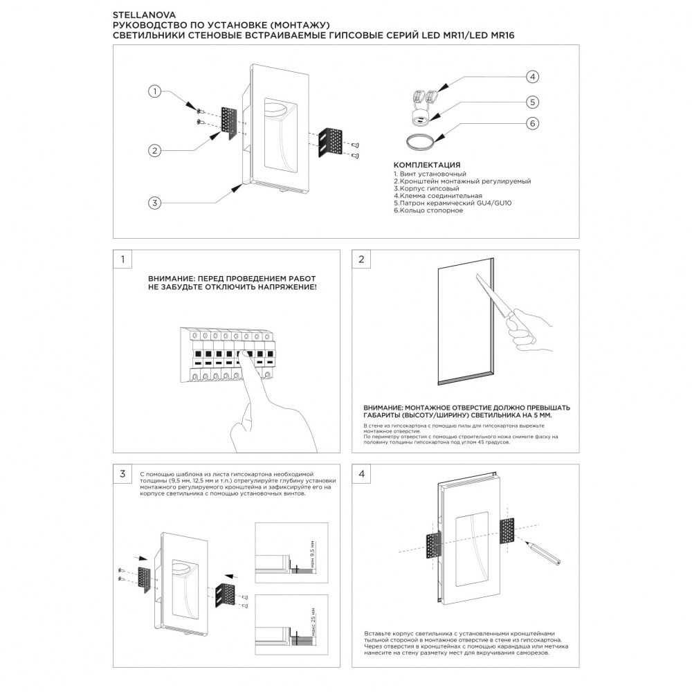 Стеновой встраиваемый гипсовый светильник для установки в стенах из гипсокартона, кирпича, пеноблоков и других материалов.