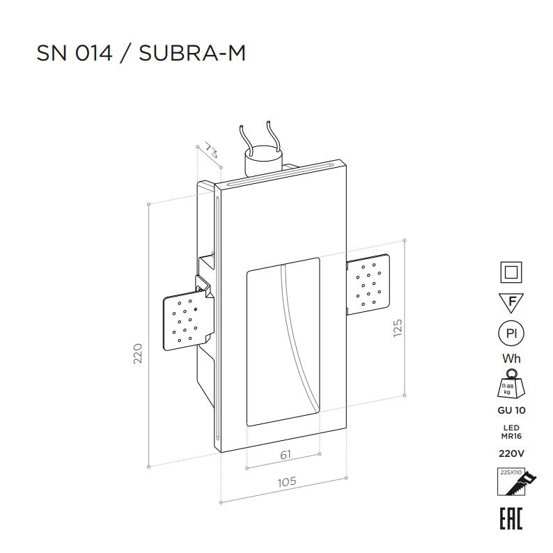 Стеновой встраиваемый гипсовый светильник для установки в стенах из гипсокартона, кирпича, пеноблоков и других материалов.