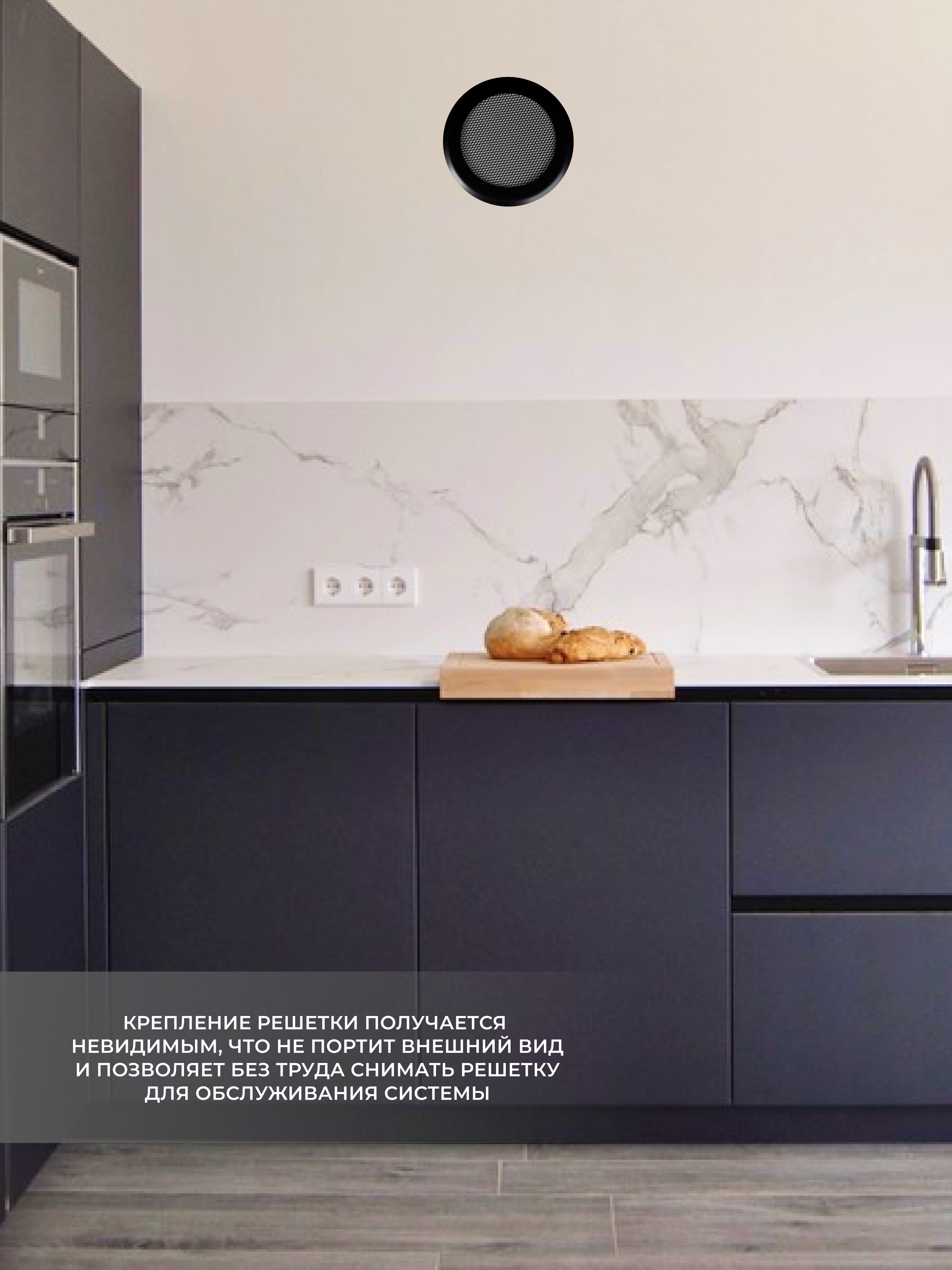 Вентиляционная решетка на магнитах выполнена из стали и состоит из двух частей. Рамка крепится к стене при помощи саморезов (не в комплекте) или клея, а декоративная часть фиксируется к рамке при помощи неодимовых магнитов. Рамка и наружная часть выкрашены порошковой эмалью в специальной печке (камере полимеризации).