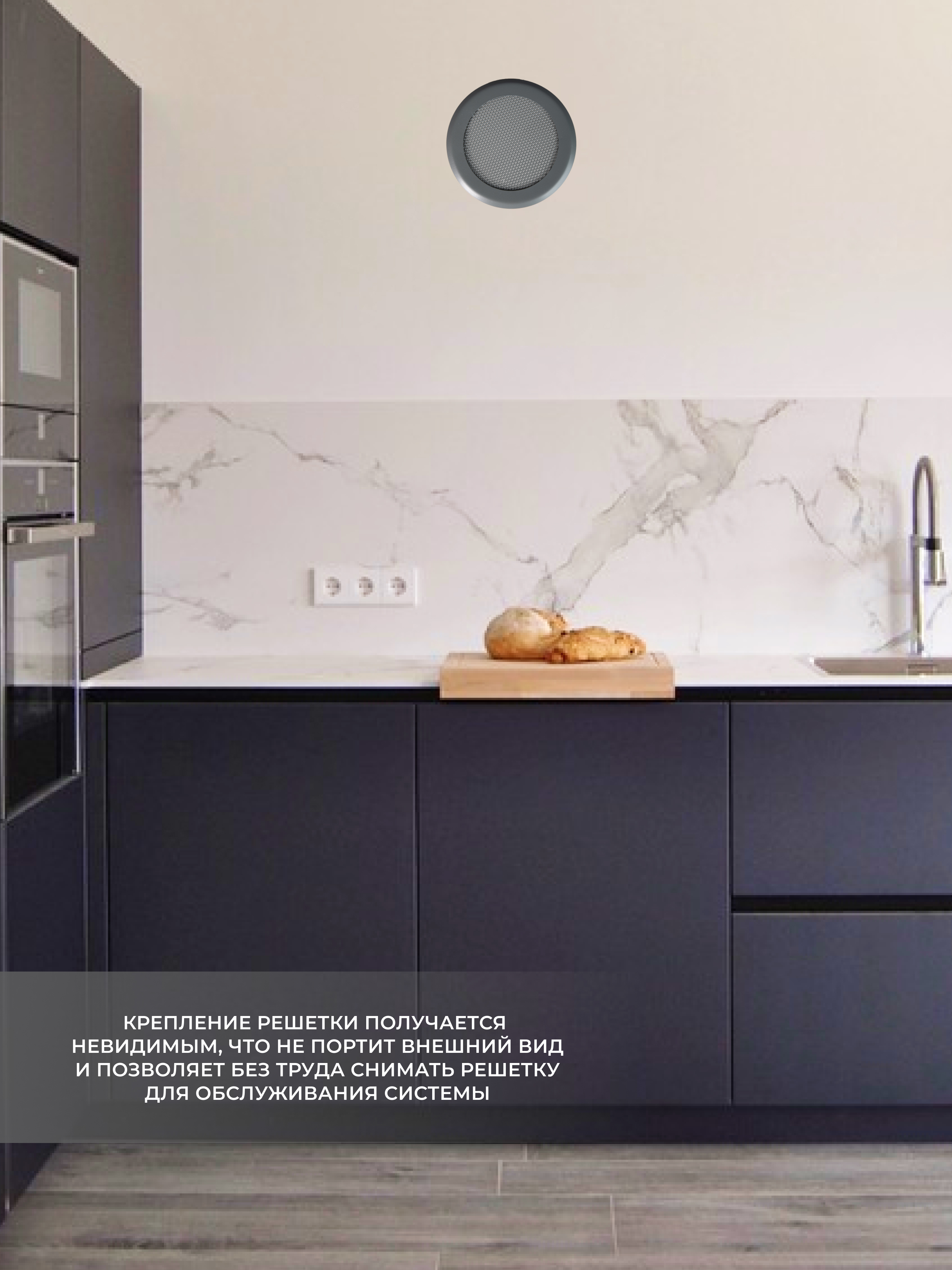 Вентиляционная решетка на магнитах выполнена из стали и состоит из двух частей. Рамка крепится к стене при помощи саморезов (не в комплекте) или клея, а декоративная часть фиксируется к рамке при помощи неодимовых магнитов. Рамка и наружная часть выкрашены порошковой эмалью в специальной печке (камере полимеризации).