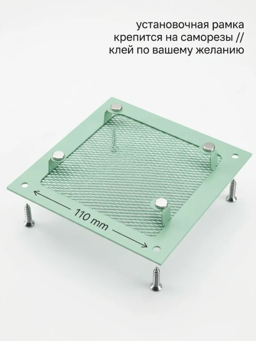 1.Монтажная рамка, которая крепится сверху на вентиляционное отверстие при помощи саморезов или клея.
