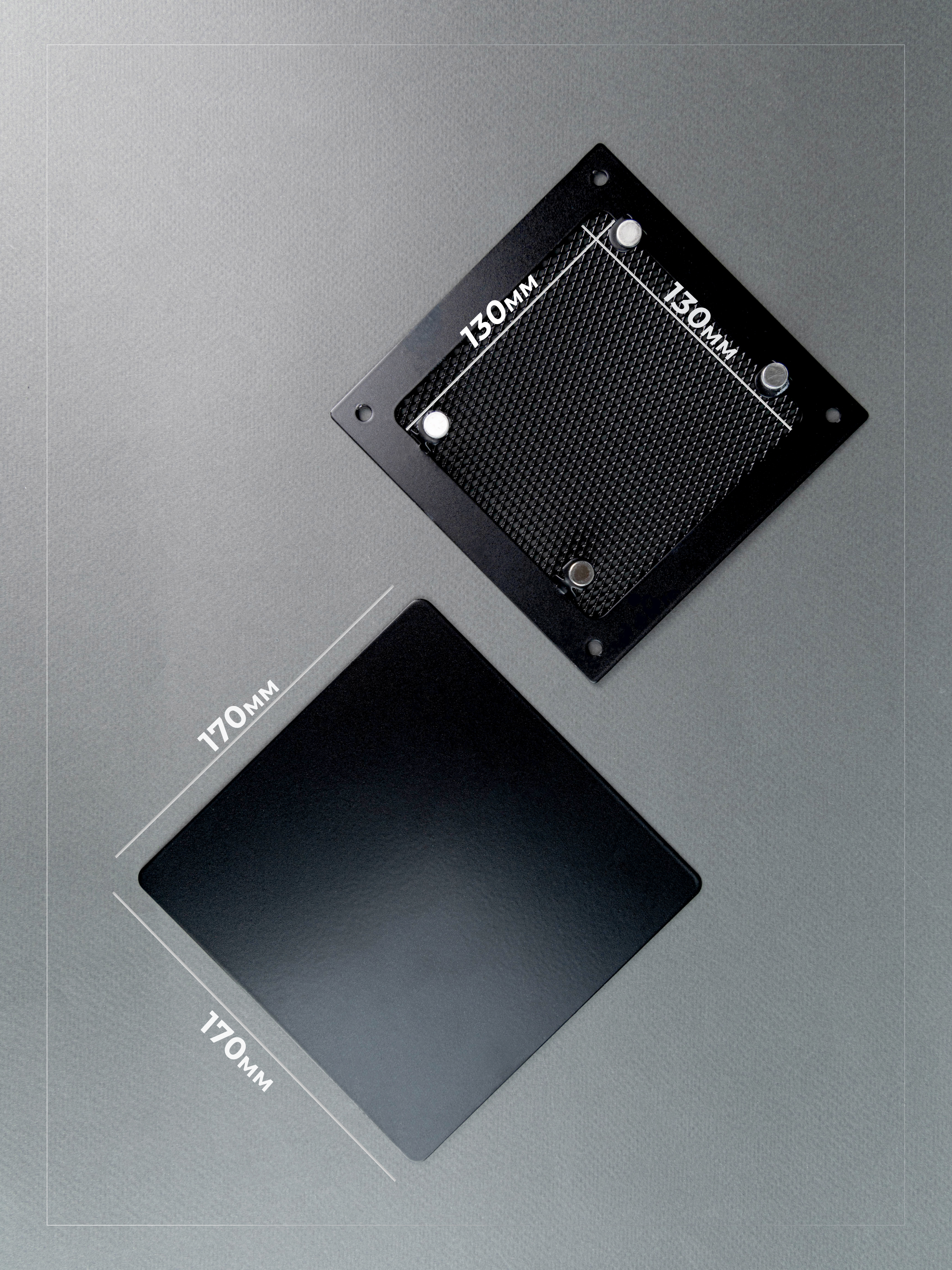 Внешний размер данной решетки 170 на 170 мм. Декоративная панель отстоит от рамки на 20 мм. Подойдет для отверстий размером не более 130 х 130 мм и круглых отверстий не более 130 мм в диаметре.
