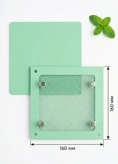 Вентиляционная решетка на магнитах от производителя Родфер имеет внешний размер 170 х 170 мм и выполнена из высококачественной стали, покрыта плотным стойким слоем краски. Решетка состоит из двух частей: