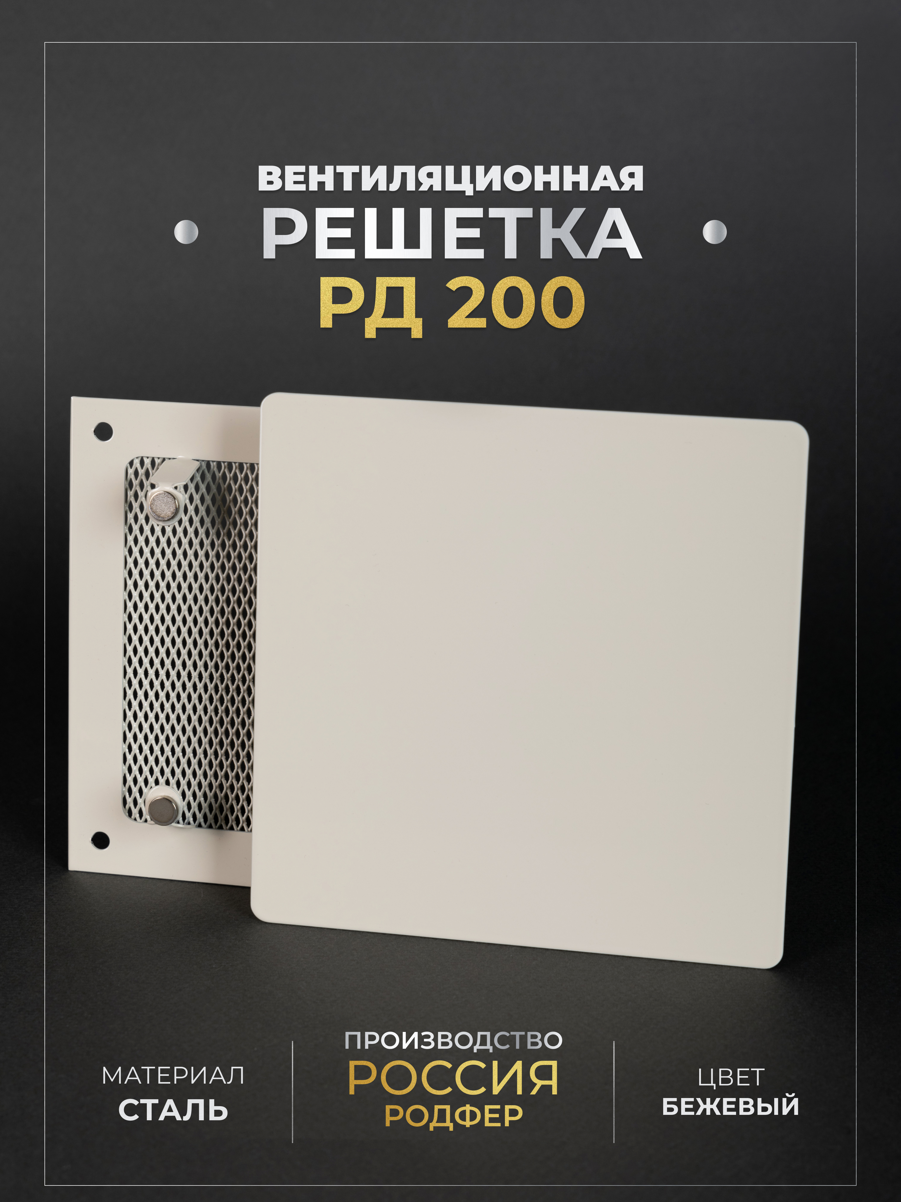 Вентиляционная декоративная решетка имеет внешний размер 200 х 200 мм и выполнена из высококачественной стали, покрыта плотным стойким слоем краски. Решетка состоит из двух частей: