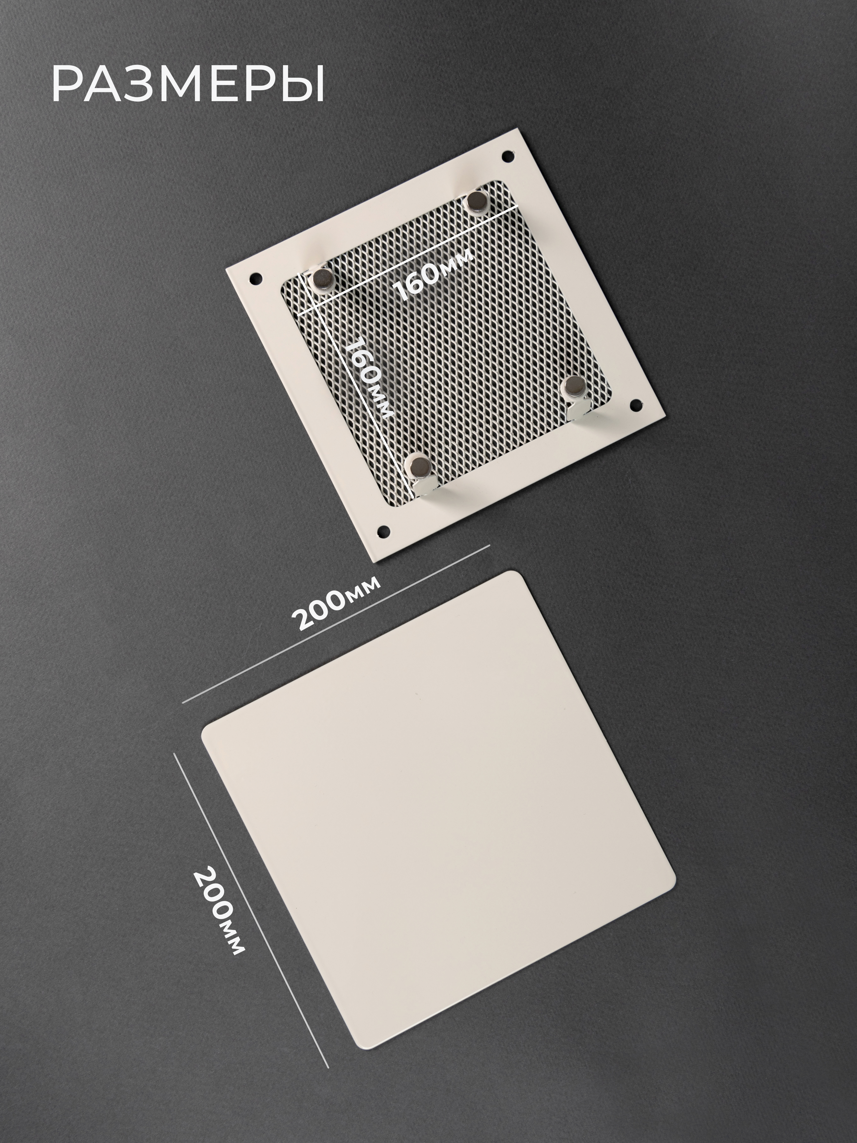 Данная идея воплощена во многих современных вентиляторах и диффузорах. Внешний размер данной решетки 200 на 200 мм. Декоративная панель отстоит от рамки на 20 мм. Подойдет для отверстий размером не более 160 х160мм и круглых отверстий не более 160мм в диаметре.