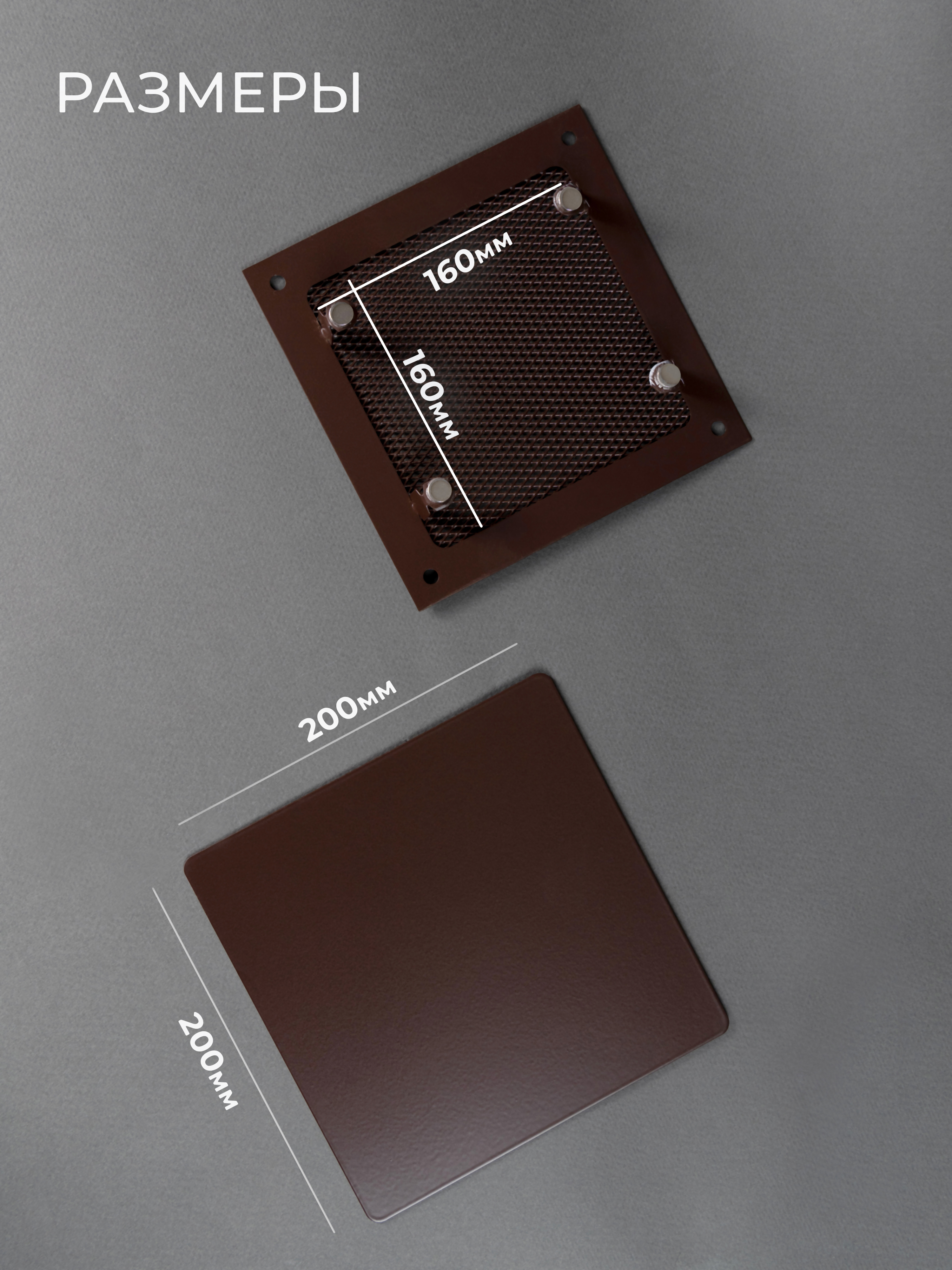 Вентиляционная декоративная решетка имеет внешний размер 200 х 200 мм и выполнена из высококачественной стали, покрыта плотным стойким слоем краски. Решетка состоит из двух частей: