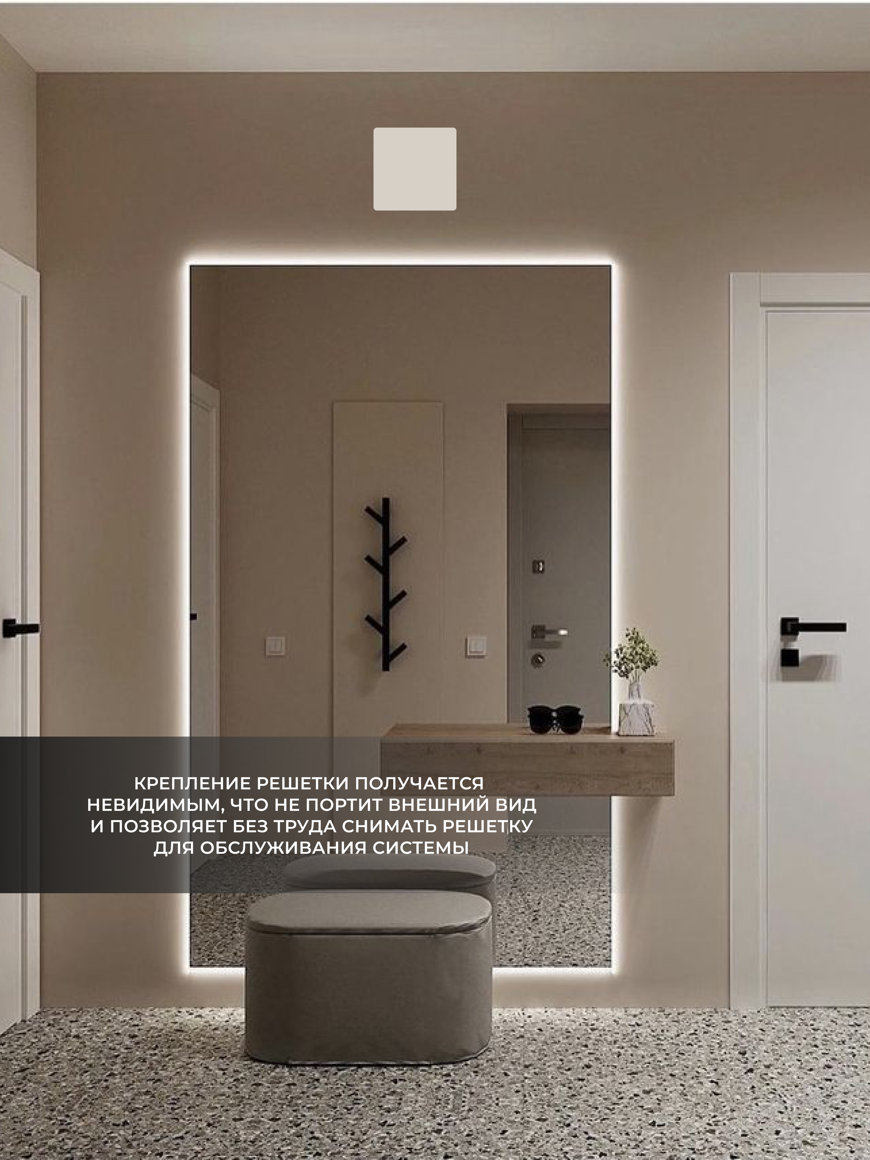 2.Декоративный элемент, который надежно фиксируется к монтажной рамке при помощи неодимовых магнитов. Благодаря данной конструкции не виден крепеж решетки, что позволяет сохранить эстетику помещения в чистом виде. При необходимости решетку легко снимать для чистки без использования дополнительных инструментов. Можно крепить на стену, потолок.