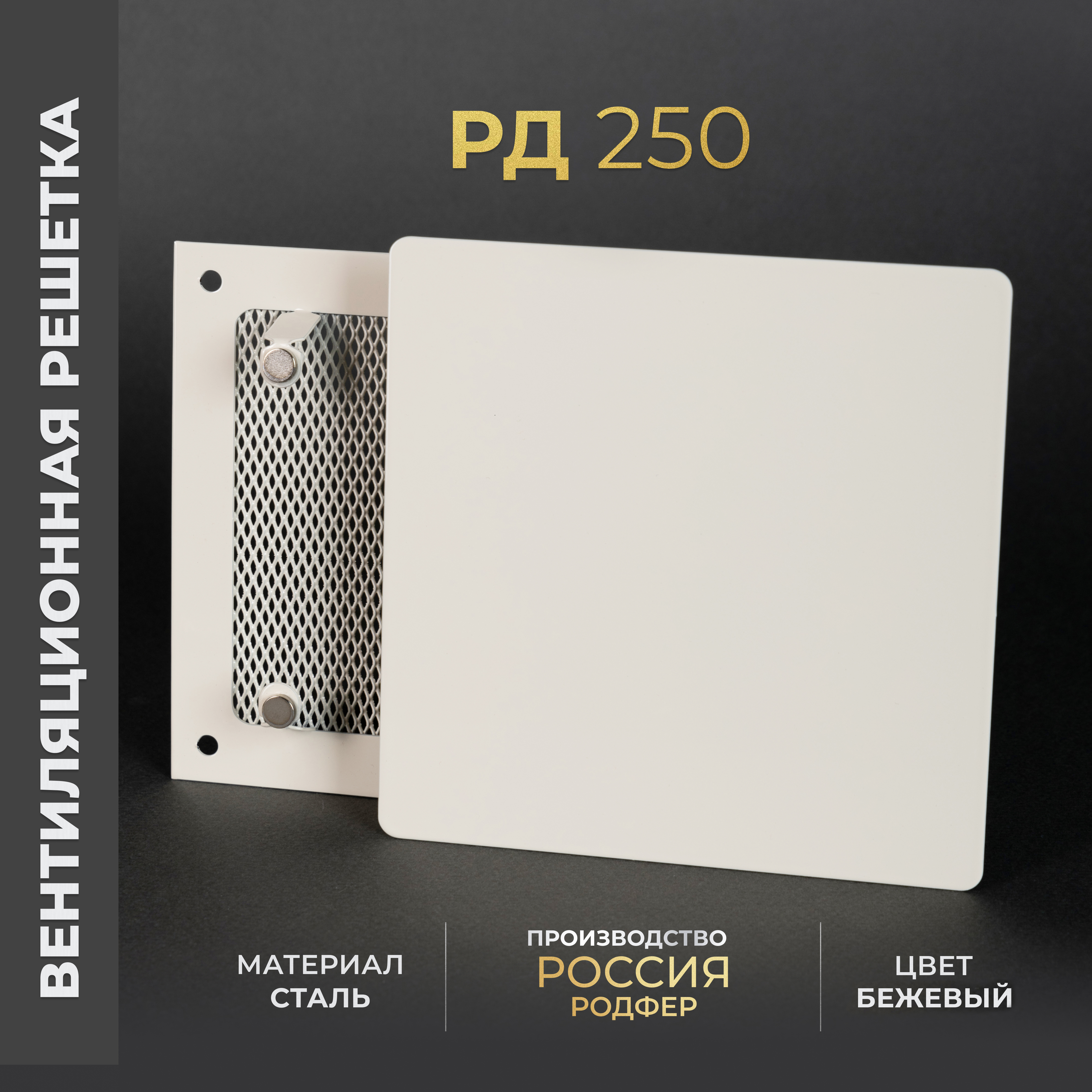 Вентиляционная решетка на магнитах от производителя Родфер имеет внешний размер 250 х 250 мм и выполнена из высококачественной стали, покрыта плотным стойким слоем краски. Решетка состоит из двух частей: