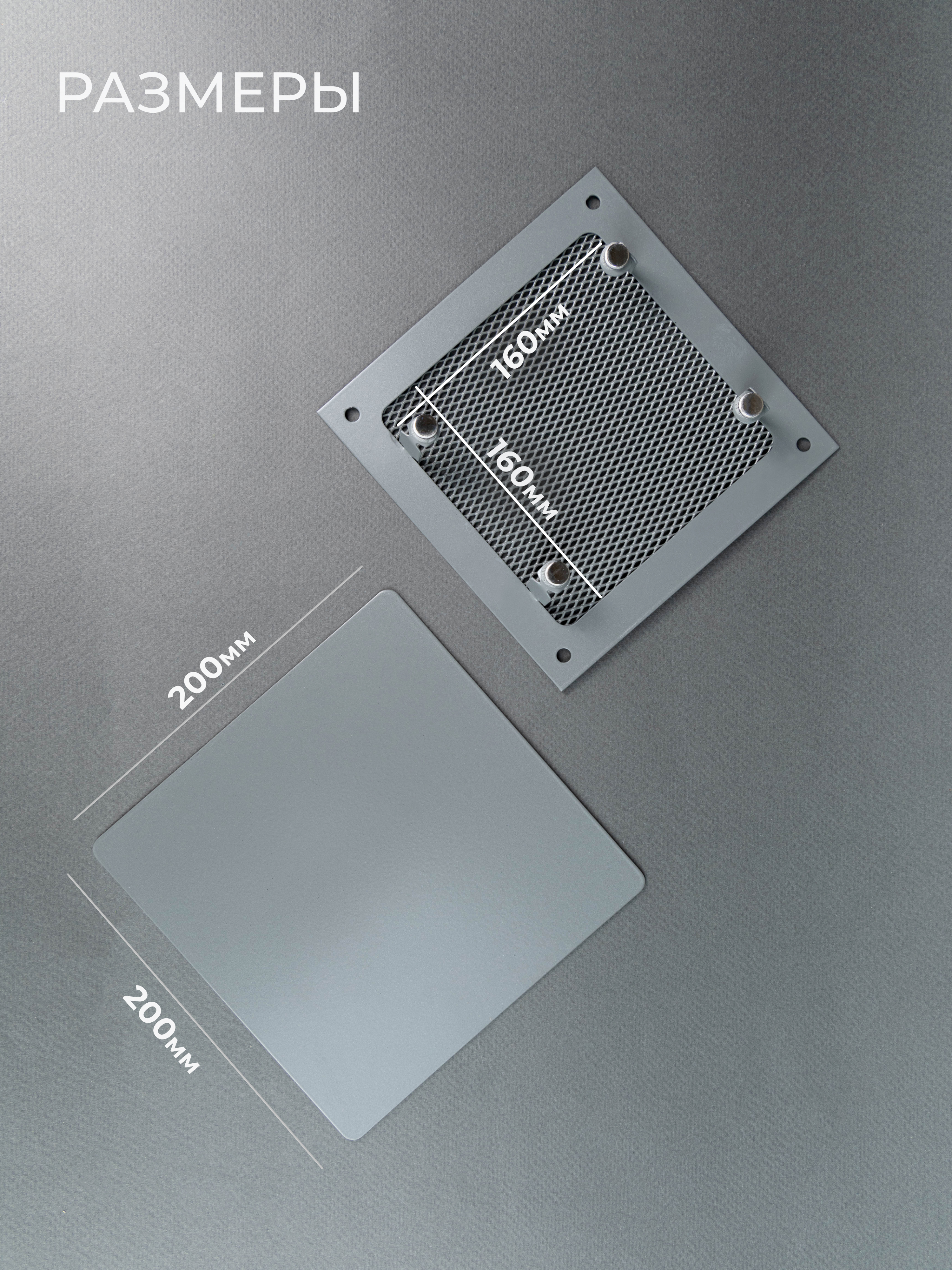 Вентиляционная решетка на магнитах от производителя Родфер имеет внешний размер 250 х 250 мм и выполнена из высококачественной стали, покрыта плотным стойким слоем краски. Решетка состоит из двух частей: