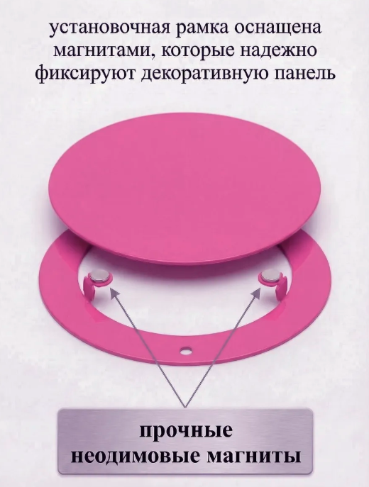 Решётка состоит из двух элементов: рамки, которая крепится к стене, и декоративной части, удерживаемой на магнитах. Такое устройство обеспечивает не только функциональность, но и эстетичный внешний вид, не нарушая общей гармонии интерьера.