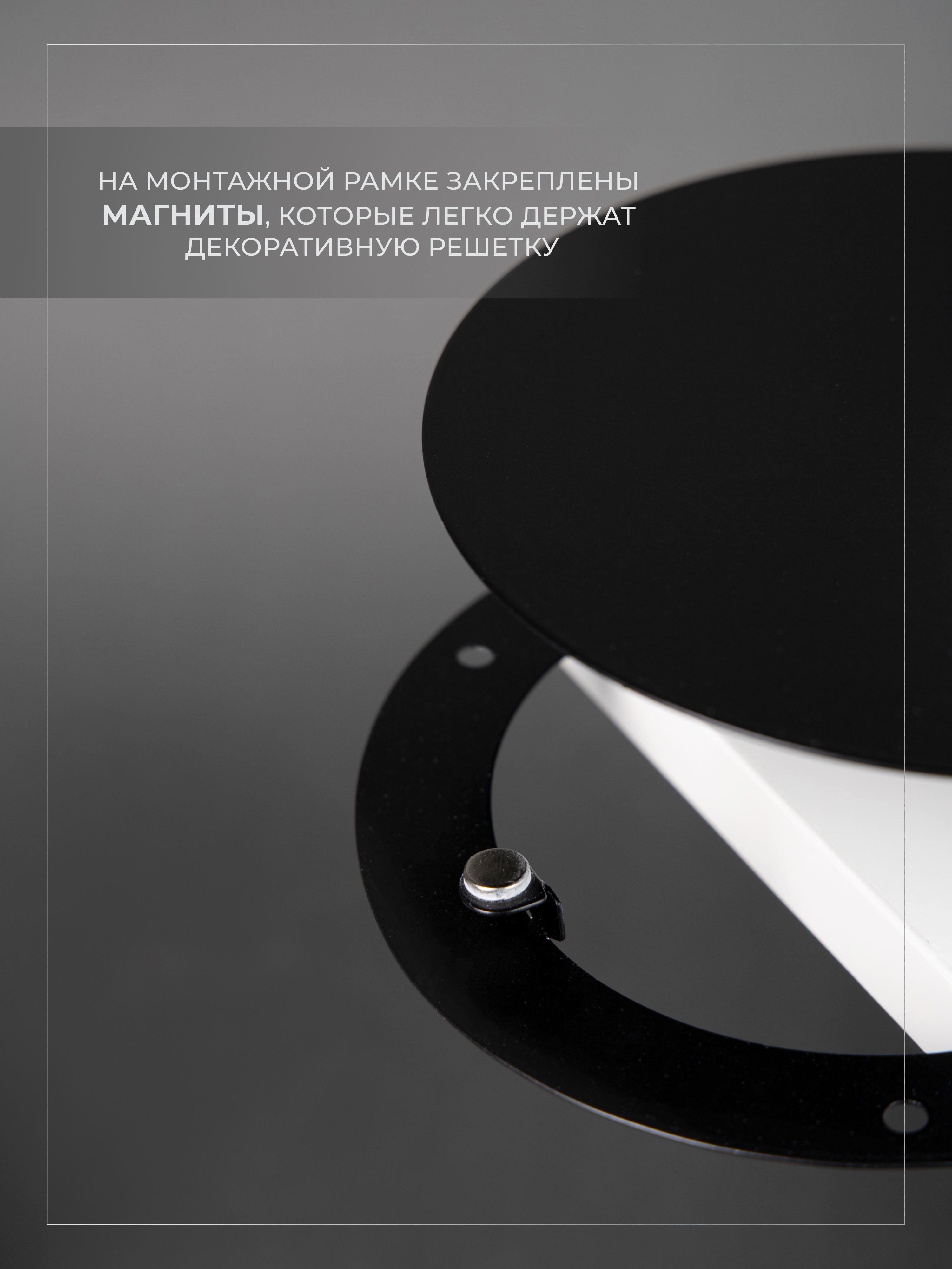 Решётка состоит из двух элементов: рамки, которая крепится к стене, и декоративной части, удерживаемой на магнитах. Такое устройство обеспечивает не только функциональность, но и эстетичный внешний вид, не нарушая общей гармонии интерьера.