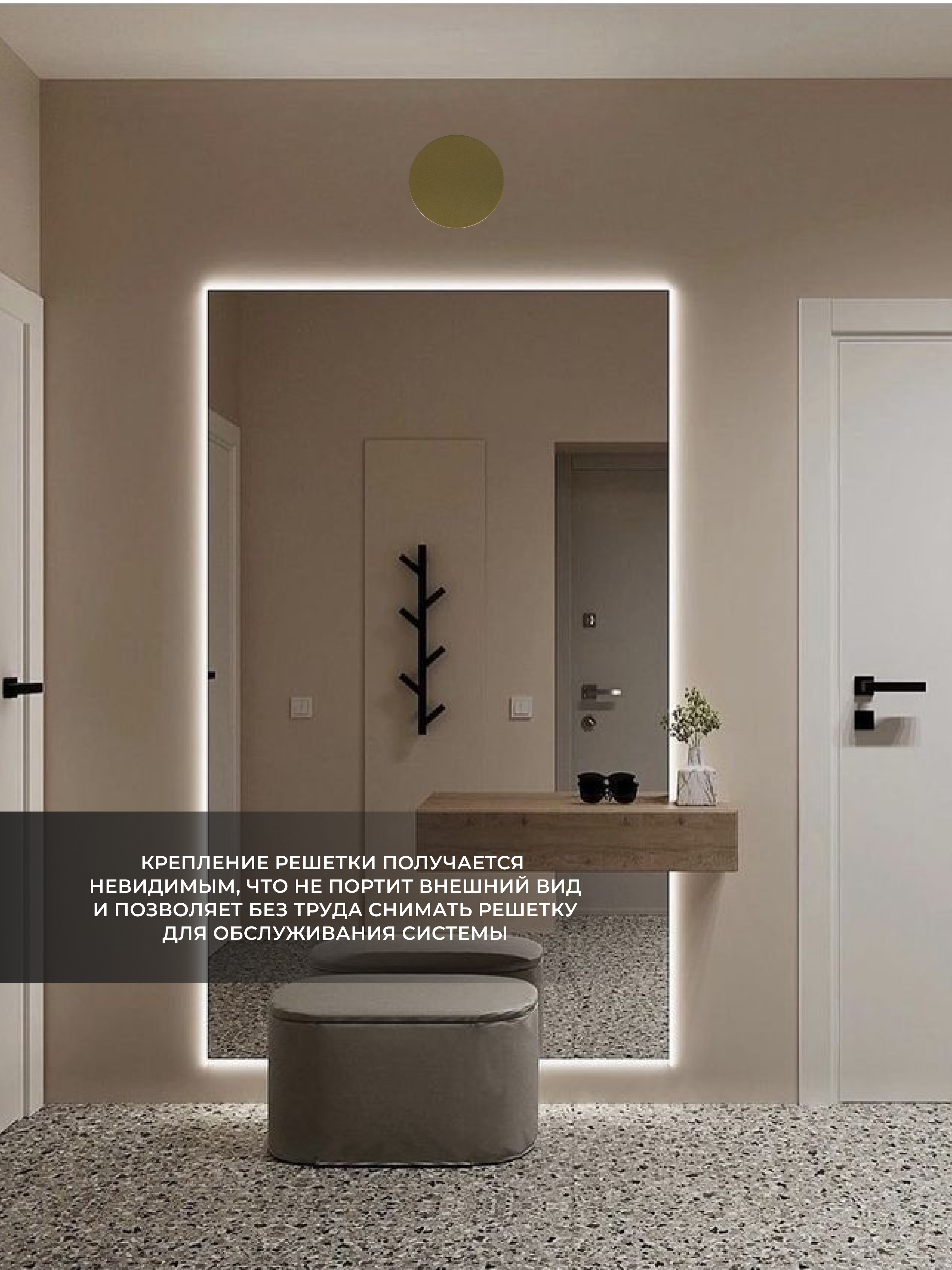 Решётка состоит из двух элементов: рамки, которая крепится к стене, и декоративной части, удерживаемой на магнитах. Такое устройство обеспечивает не только функциональность, но и эстетичный внешний вид, не нарушая общей гармонии интерьера.