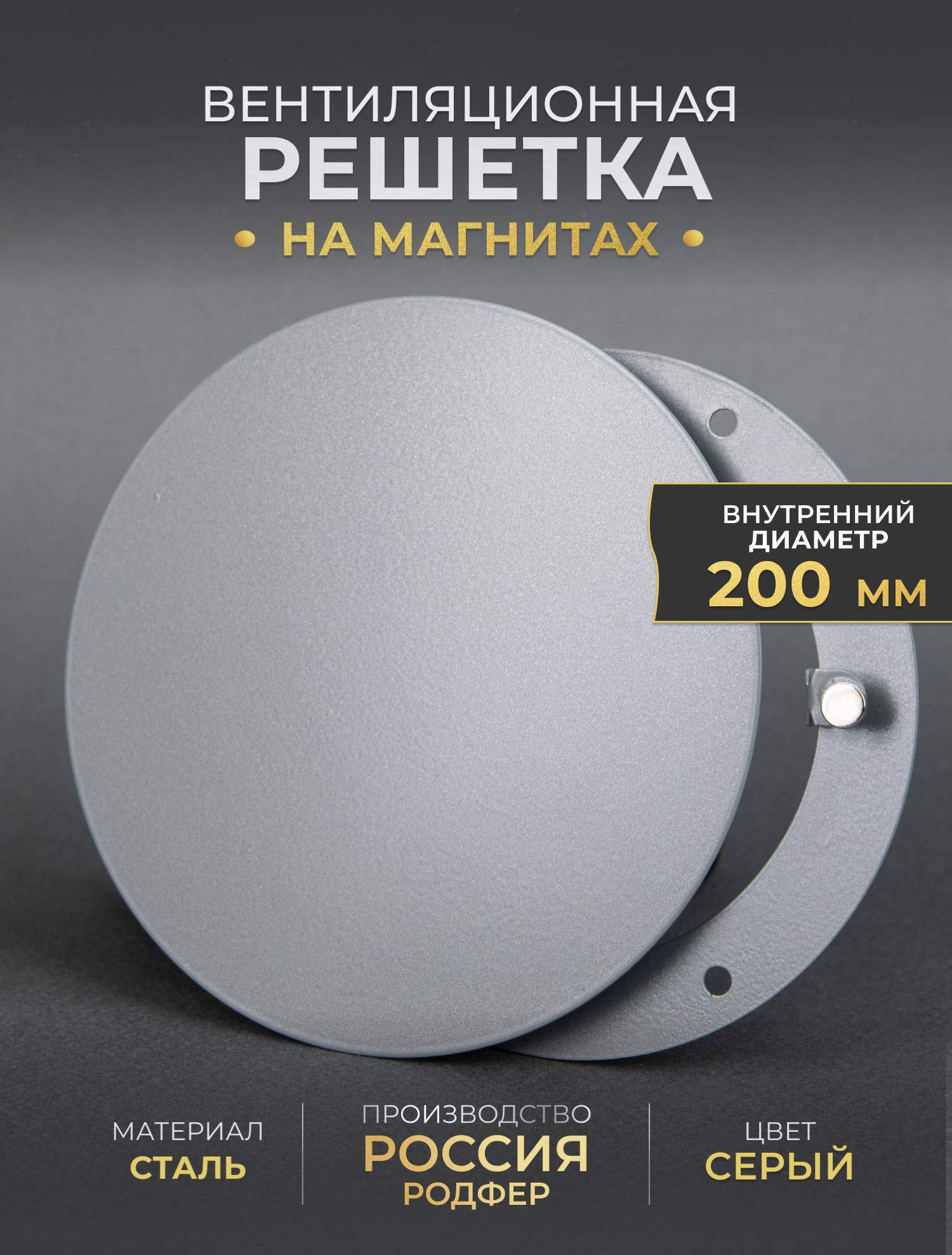 Вентиляционная решетка на магнитах выполнена из стали и состоит из двух частей. Рамка крепится к стене при помощи саморезов (5мм) или клея (жидких гвоздей), а декоративная часть фиксируется к рамке при помощи неодимовых магнитов. Рамка выкрашена порошковой краской (эмалью) в специальной печке (камере полимеризации).