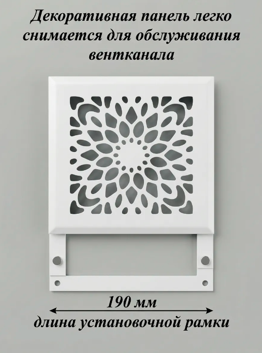 Вентиляционная решетка на магнитах РодФер выполнена из стали и состоит из двух частей. Рамка крепится к стене при помощи саморезов (5мм) или клея, а декоративная часть фиксируется к рамке при помощи неодимовых магнитов. Рамка и наружная часть выкрашены порошковой краской (эмалью) в специальной печке при высоких температурах. Обслуживать такую решетку легко и просто, достаточно просто снять верхнюю рамку применив небольшое усилие. При этом нет необходимости использовать дополнительные инструменты. Область применения данных решеток очень широка: приточная и вытяжная вентиляция в домах и квартирах, офисах и других помещениях, декорирование ниш, к которым нужен периодический доступ и т. д.