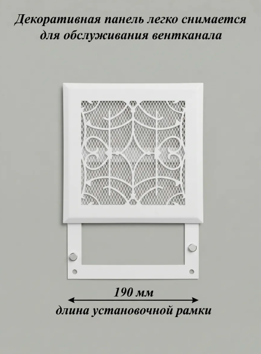 Вентиляционная решетка на магнитах РодФер выполнена из стали и состоит из двух частей. Рамка крепится к стене при помощи саморезов (5мм) или клея, а декоративная часть фиксируется к рамке при помощи неодимовых магнитов. Рамка и наружная часть выкрашены порошковой краской (эмалью) в специальной печке при высоких температурах. Обслуживать такую решетку легко и просто, достаточно просто снять верхнюю рамку применив небольшое усилие. При этом нет необходимости использовать дополнительные инструменты. Область применения данных решеток очень широка: приточная и вытяжная вентиляция в домах и квартирах, офисах и других помещениях, декорирование ниш, к которым нужен периодический доступ и т. д.