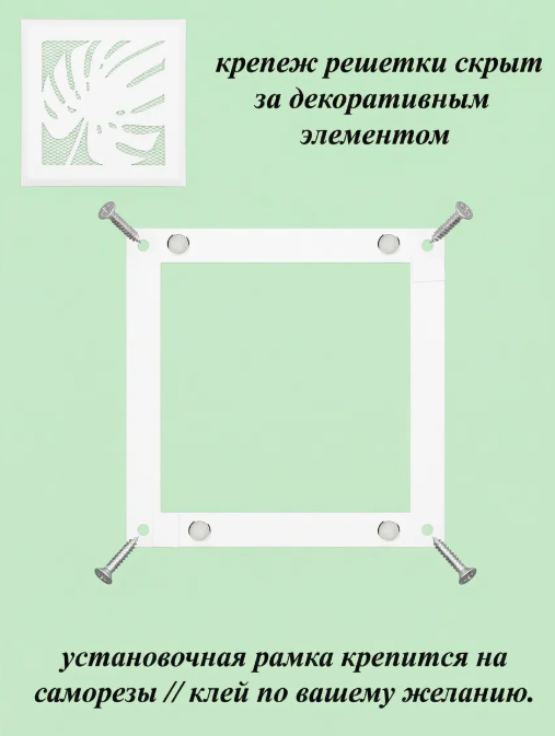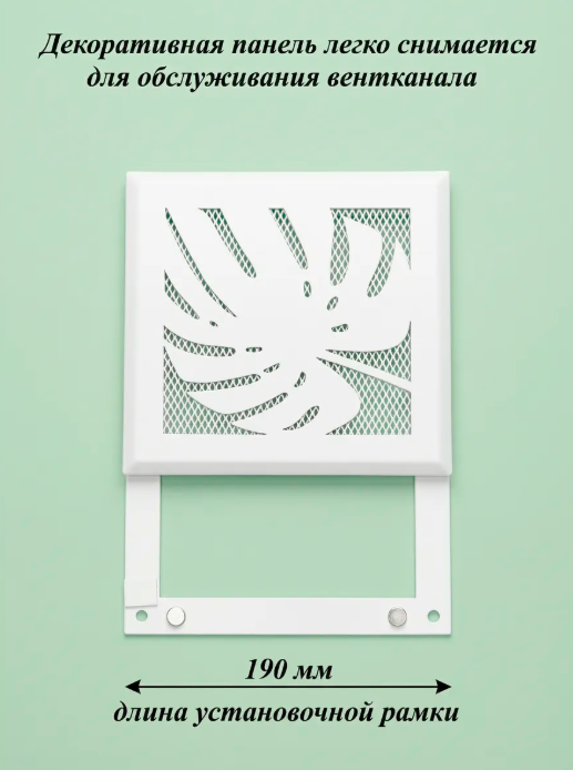 Вентиляционная решетка на магнитах РодФер выполнена из стали и состоит из двух частей. Рамка крепится к стене при помощи саморезов (5мм) или клея, а декоративная часть фиксируется к рамке при помощи неодимовых магнитов. Рамка и наружная часть выкрашены порошковой краской (эмалью) в специальной печке при высоких температурах. Обслуживать такую решетку легко и просто, достаточно просто снять верхнюю рамку применив небольшое усилие. При этом нет необходимости использовать дополнительные инструменты. Область применения данных решеток очень широка: приточная и вытяжная вентиляция в домах и квартирах, офисах и других помещениях, декорирование ниш, к которым нужен периодический доступ и т. д.