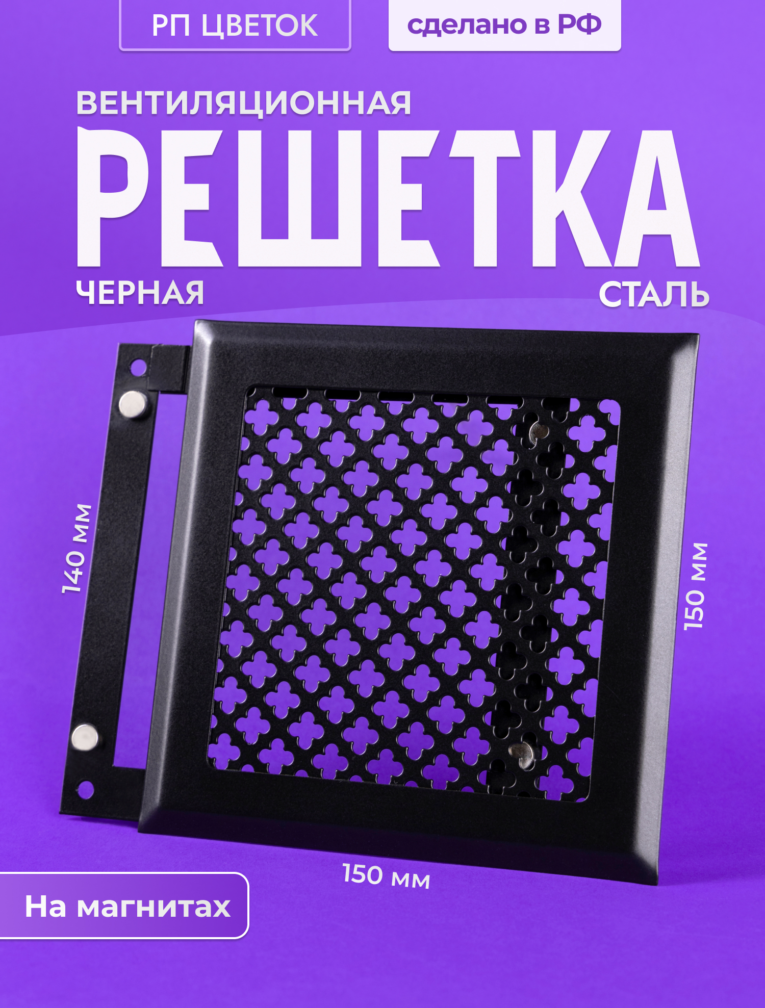 Вентиляционная Решетка РП Цветок 150х150 Черный