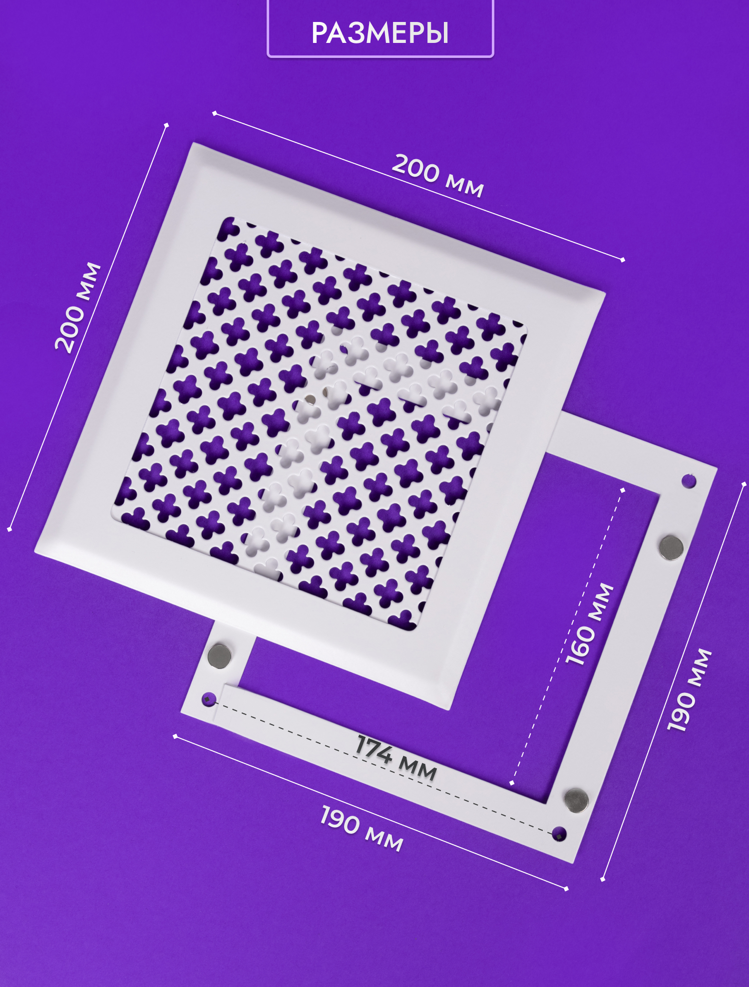 Размер внутренней части решетки 190х190 мм