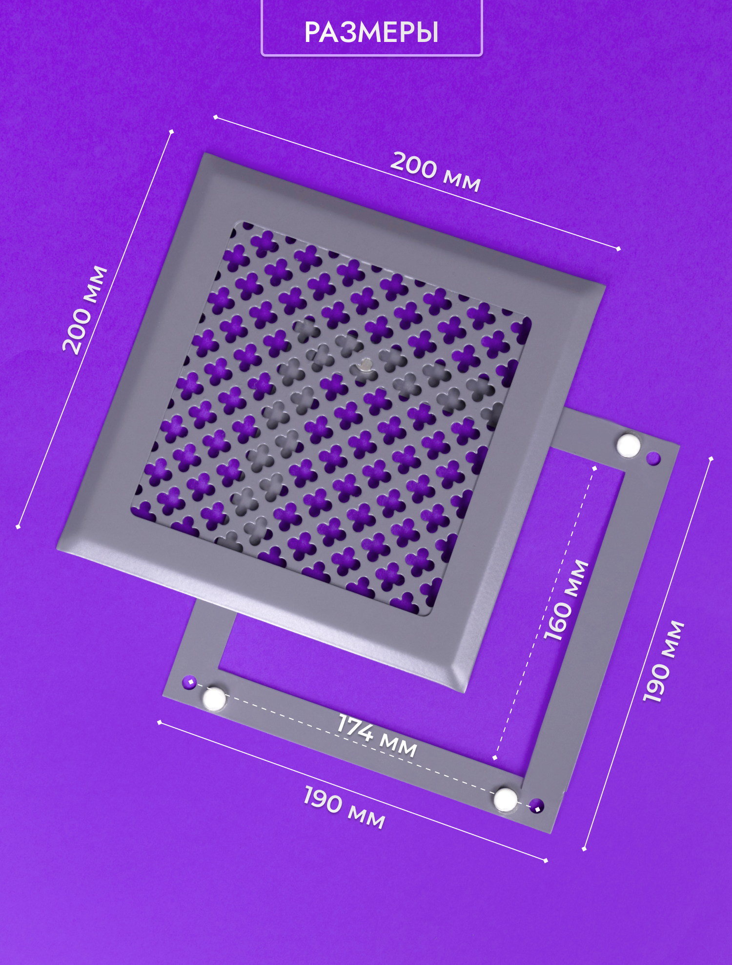 Размер внутренней части решетки 190х190 мм